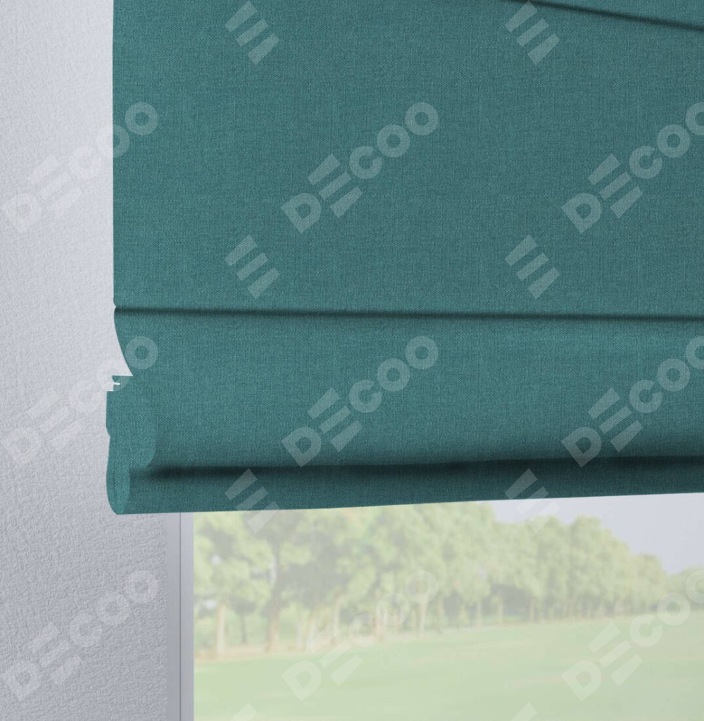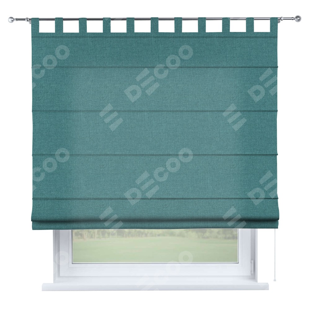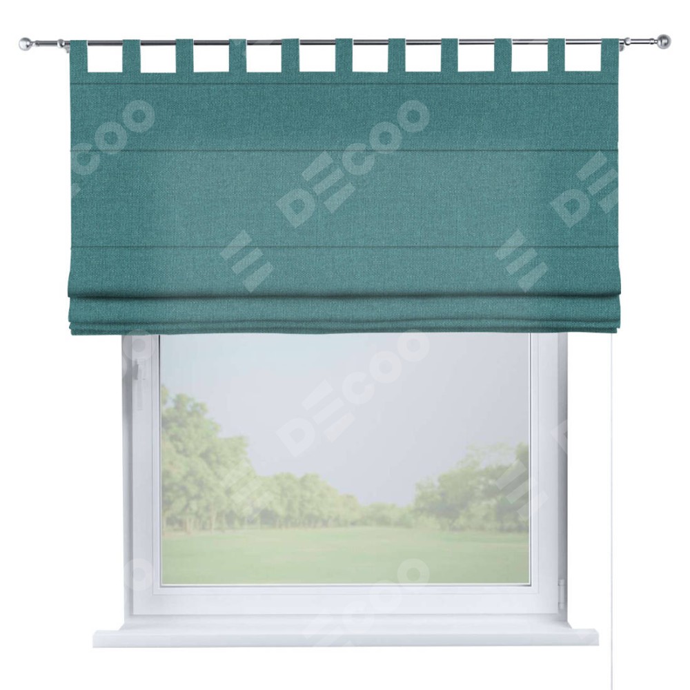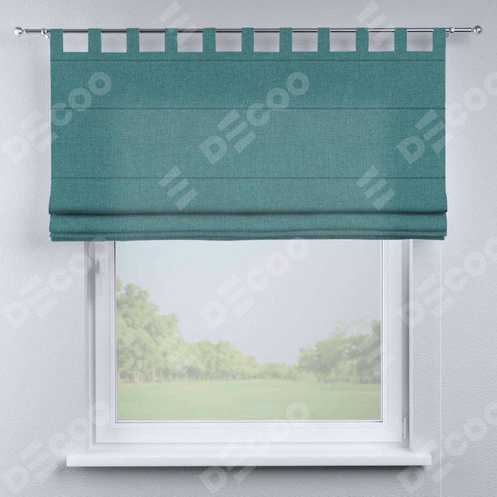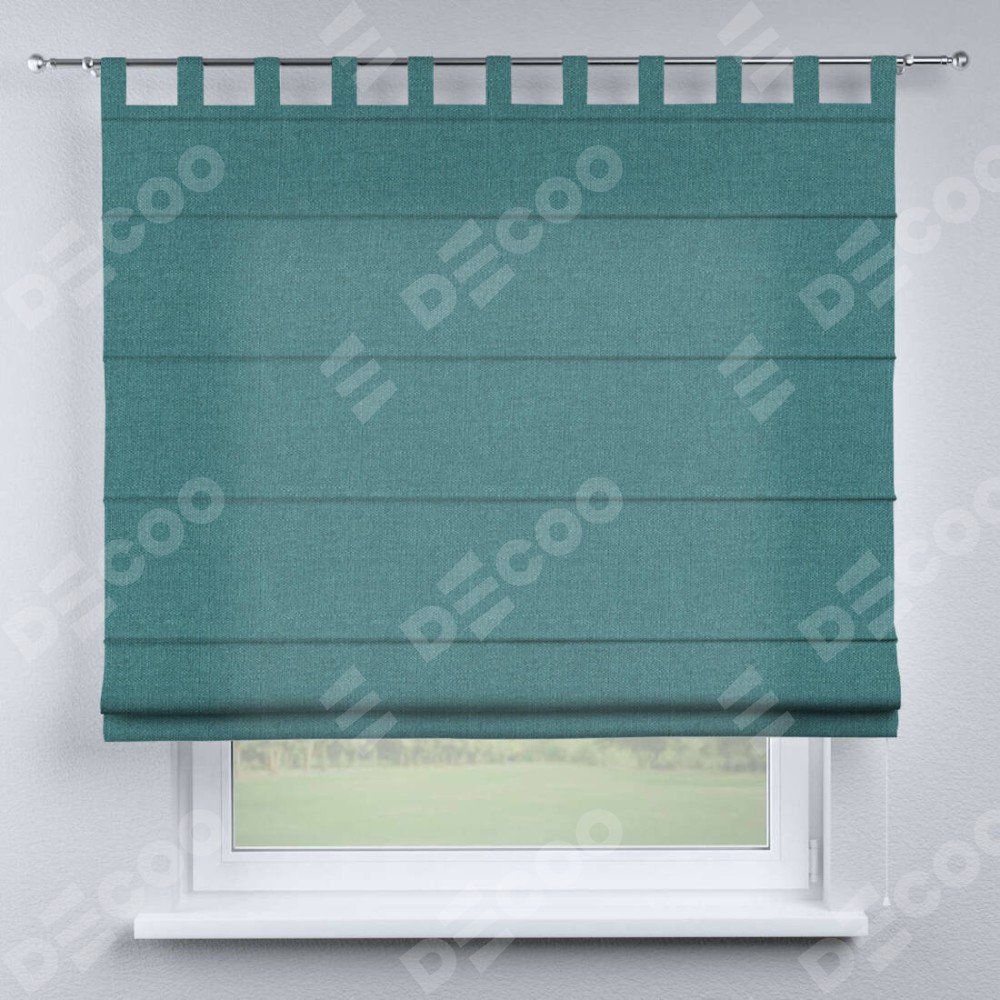 Римская штора на петлях «Кортин», ткань лён бирюзовый