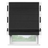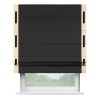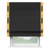 Римская штора производителя «Cortin», используется для проёма, пошита из ткани лён черный, артикул 85927. Отделка шторы кантом «Стрим Дуо» на кантах расположены люверсы с пояском, ткань для канта используется из льна разной расцветки на выбор. Ткань для пояска обычно используется из основной ткани шторы, а так же можно сделать из любой расцветки по желанию. Имеет универсальный механизм и подходит для монтажа: на потолок, на стену и в нишу.