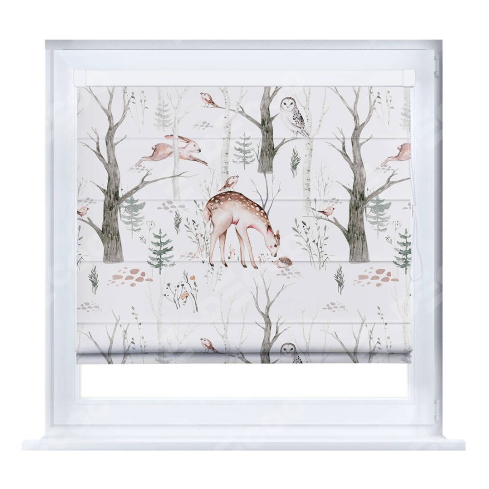 Римская штора производителя «Cortin», устанавливается на створку окна, пошита из ткани блэкаут с нанесением сублимационной печати «Скандинавский питомник». Штора шьётся по индивидуальным размерам, для данного типа римской шторы возможная ширина от 35 до 150 см., высота до 250 см.