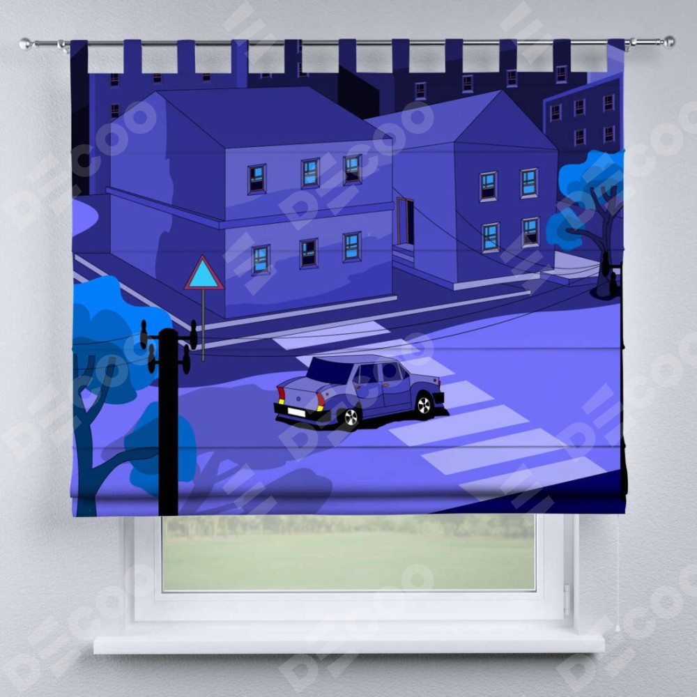 Римская штора производителя «Cortin», используется для проёма, пошита из ткани блэкаут с нанесением сублимационной печати «Ночные улицы». Данная модель пошита на петлях, комплектуется на выбор круглым карнизом и подходит для монтажа на стену. Римская штора на петлях имеет простую систему регулировки высоты, отличительным преимуществом данной модели является простой способ монтажа. Достаточно повесить ее на трубу и штора готова!