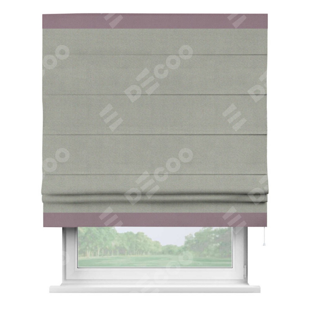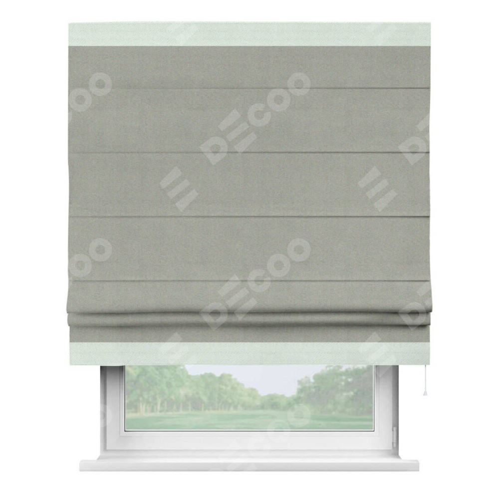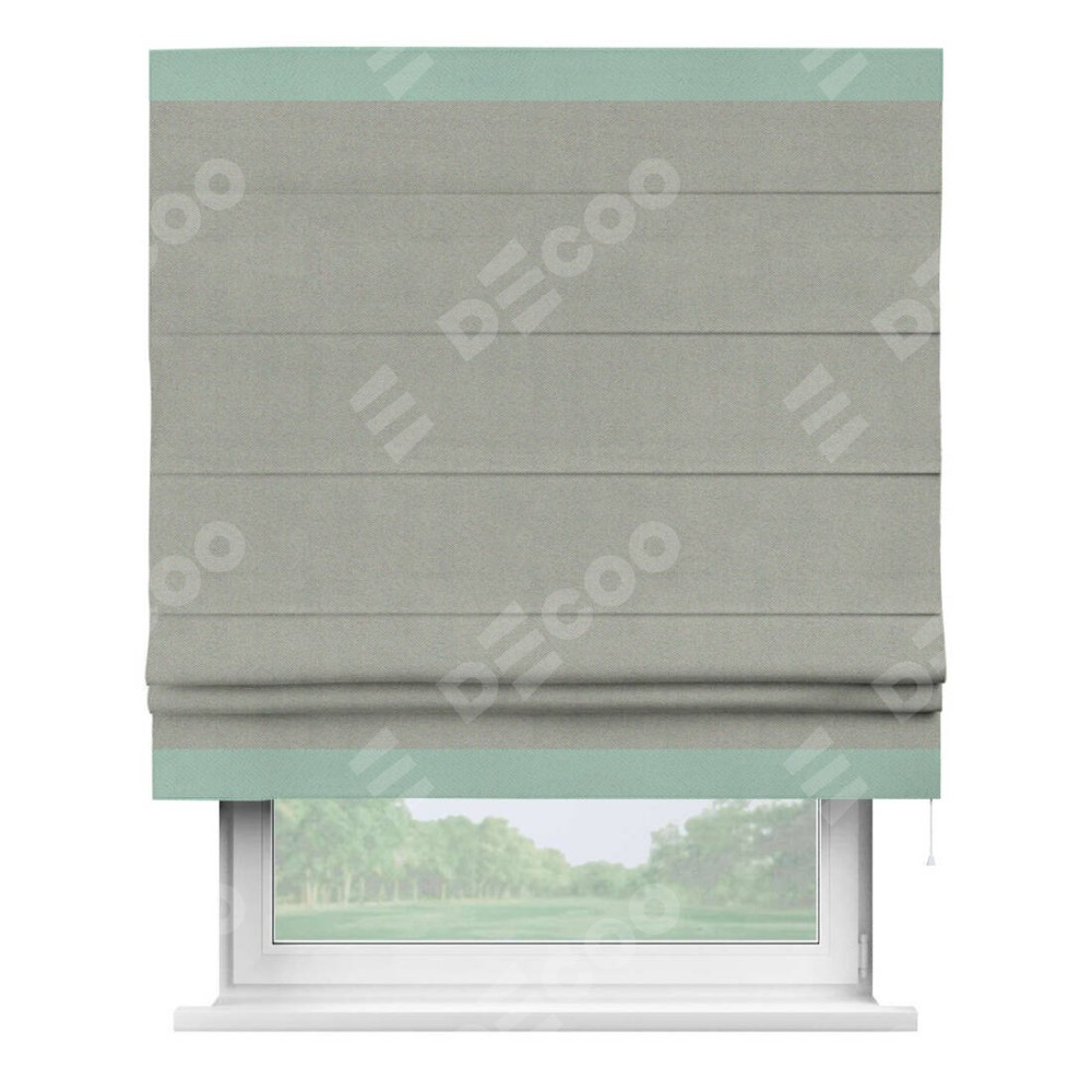 Римская штора производителя «Cortin», используется для проёма, пошита из ткани блэкаут однотонный серый, артикул ткани 88292. Отделка шторы кантом «Горизонт», ткань для канта используется из блэкаута однотонного разной расцветки на выбор. Имеет универсальный механизм и подходит для монтажа: на потолок, на стену и в нишу.
