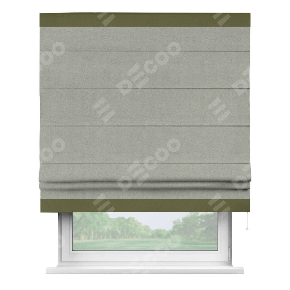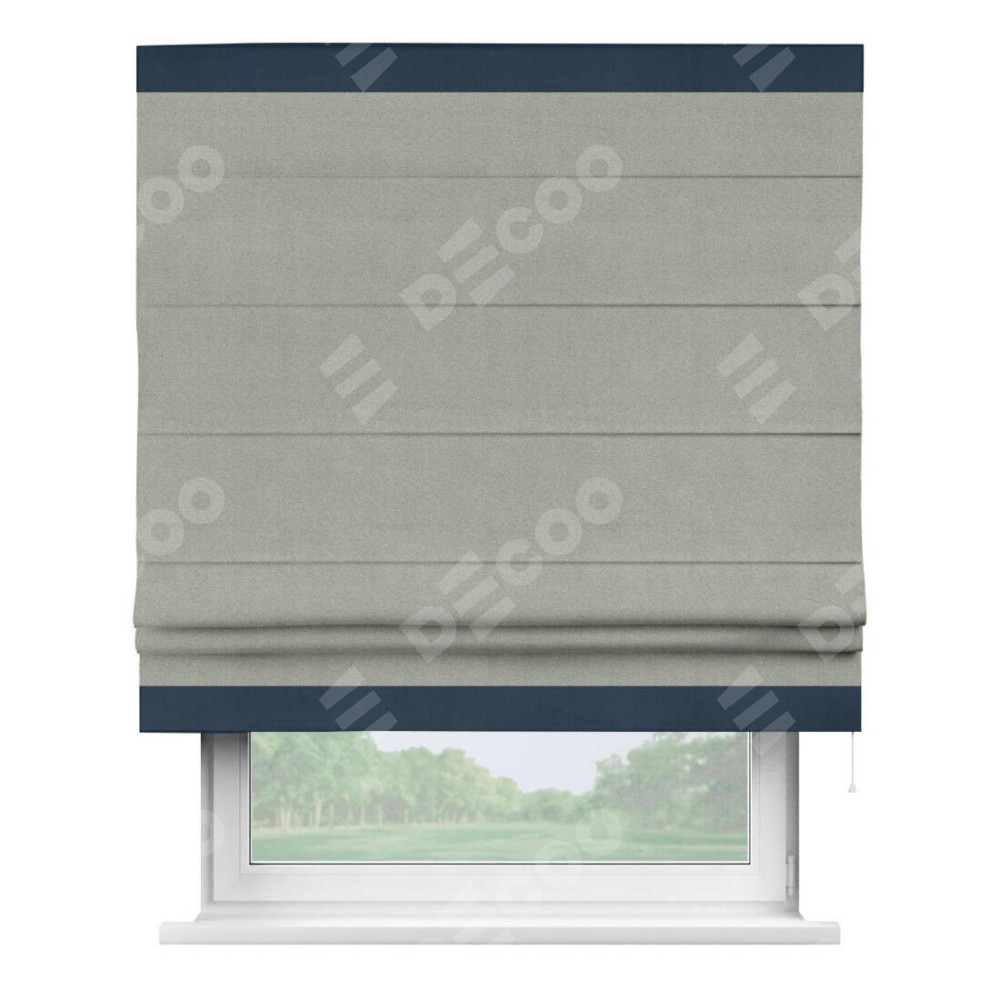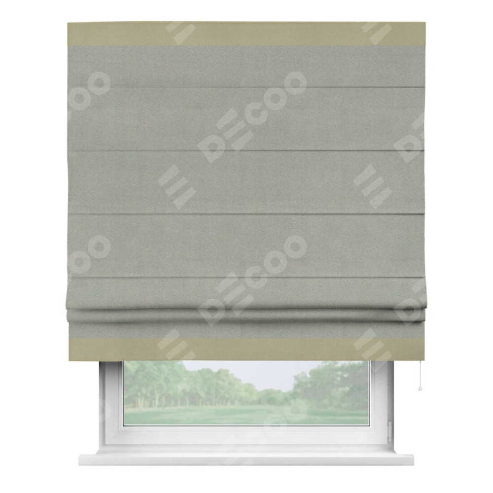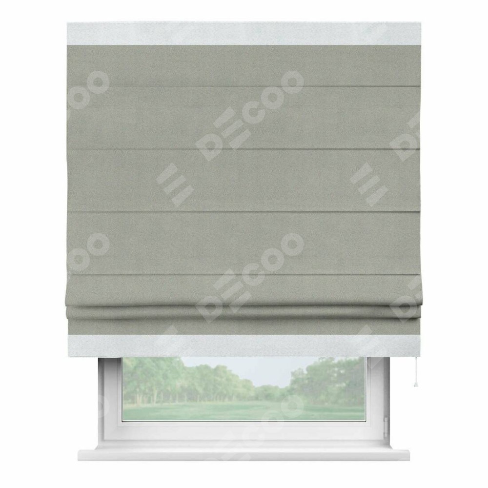 Римская штора производителя «Cortin», используется для проёма, пошита из ткани блэкаут однотонный серый, артикул ткани 88292. Отделка шторы кантом «Горизонт», ткань для канта используется из блэкаута однотонного разной расцветки на выбор. Имеет универсальный механизм и подходит для монтажа: на потолок, на стену и в нишу.
