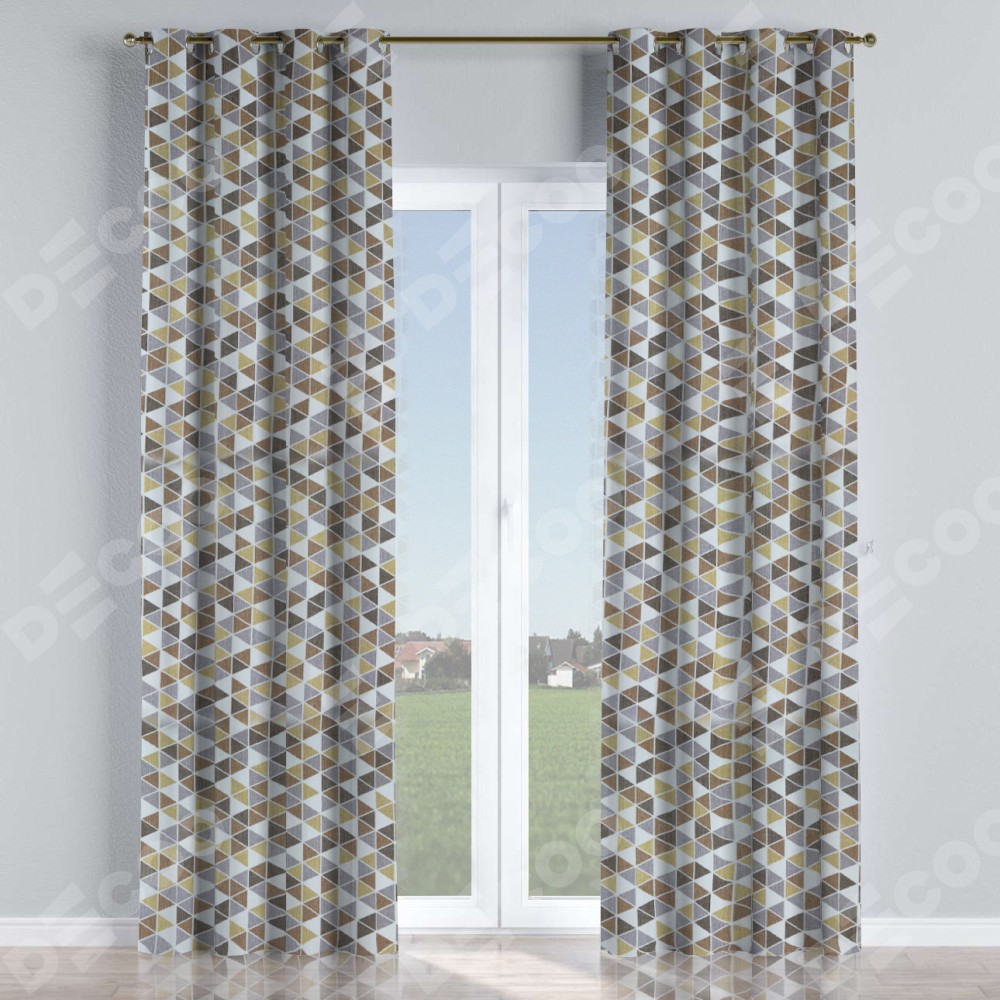 Комплект прямых штор, от производителя «Cortin», пошиты из ткани димаут «Треугольники коричневые», артикул ткани 23021. Данная модель пошита на люверсах, комплектуется на выбор круглым карнизом и подходит для монтажа на стену или потолок. Прямые шторы на люверсах шьются по стандарту с коэффициентом 1/2 (на 100 см. ширины проёма 200 см. ширины ткани), отличительным преимуществом данной модели является простой способ монтажа. Достаточно повесить ее на трубу и штора готова!