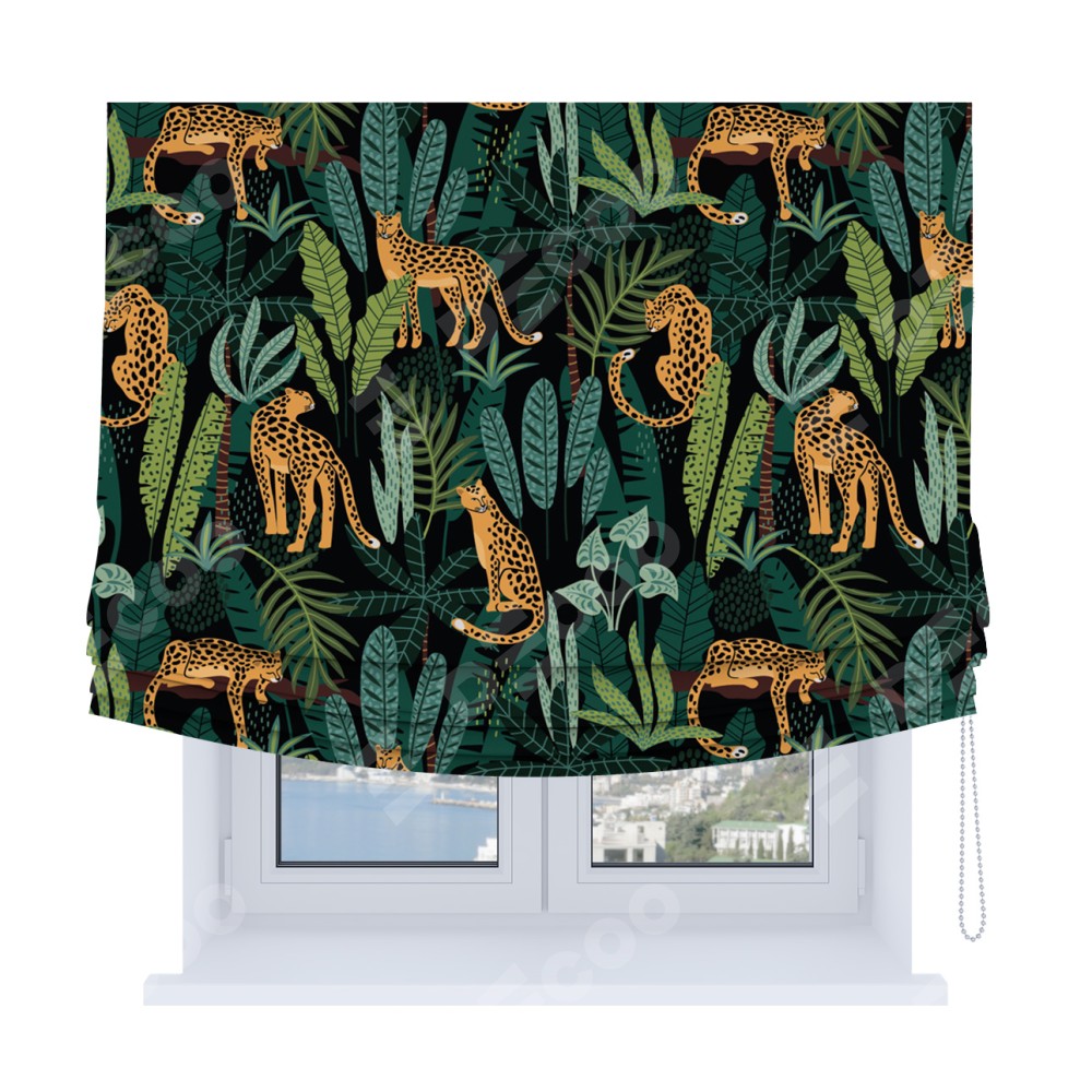 Римская штора Soft с мягкими складками, «Леопарды в джунглях»