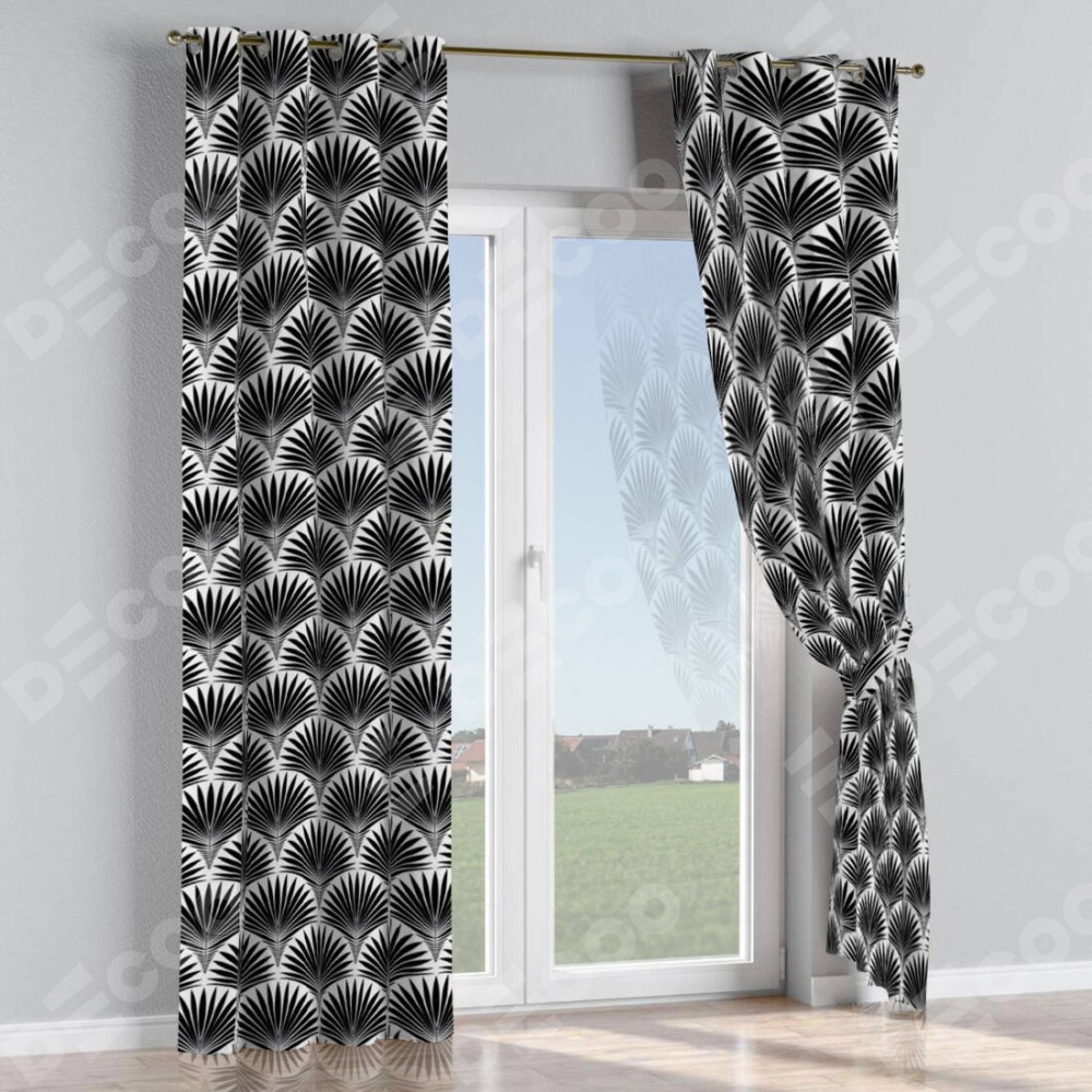 Комплект прямых штор, от производителя «Cortin», пошиты из ткани блэкаут с нанесением сублимационной печати «Арт-деко листья черный». Данная модель пошита на люверсах, комплектуется на выбор круглым карнизом и подходит для монтажа на стену или потолок. Прямые шторы на люверсах шьются по стандарту с коэффициентом 1/2 (на 100 см. ширины проёма 200 см. ширины ткани), отличительным преимуществом данной модели является простой способ монтажа. Достаточно повесить ее на трубу и штора готова!