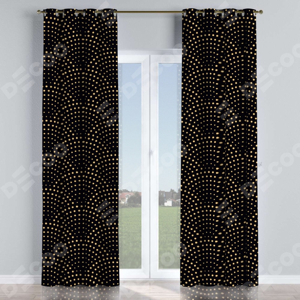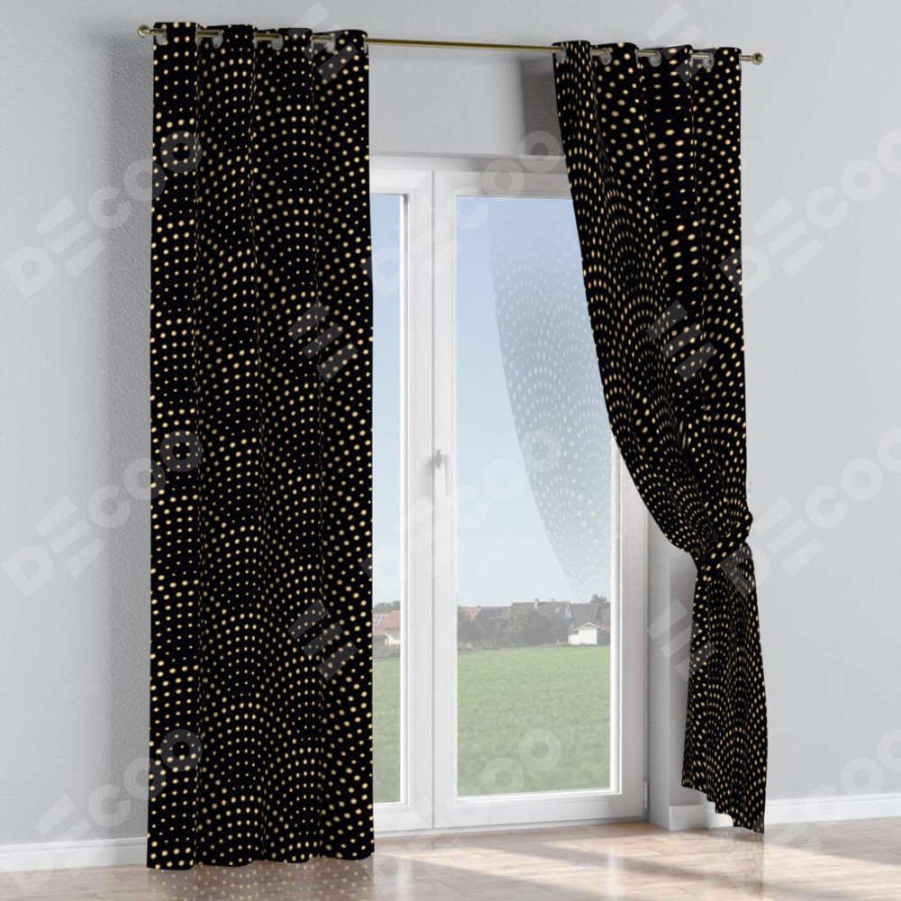 Длина карниза равна ширине окна плюс 30 — 50 см. При расчете длины штанги наконечники не учитываются. Для определения высоты штор измерьте расстояние от верхнего края карниза до пола и отнимите 1 см. Прибавьте 4 см  (гребешок над люверсом) Это габаритный размер вашего изделия.