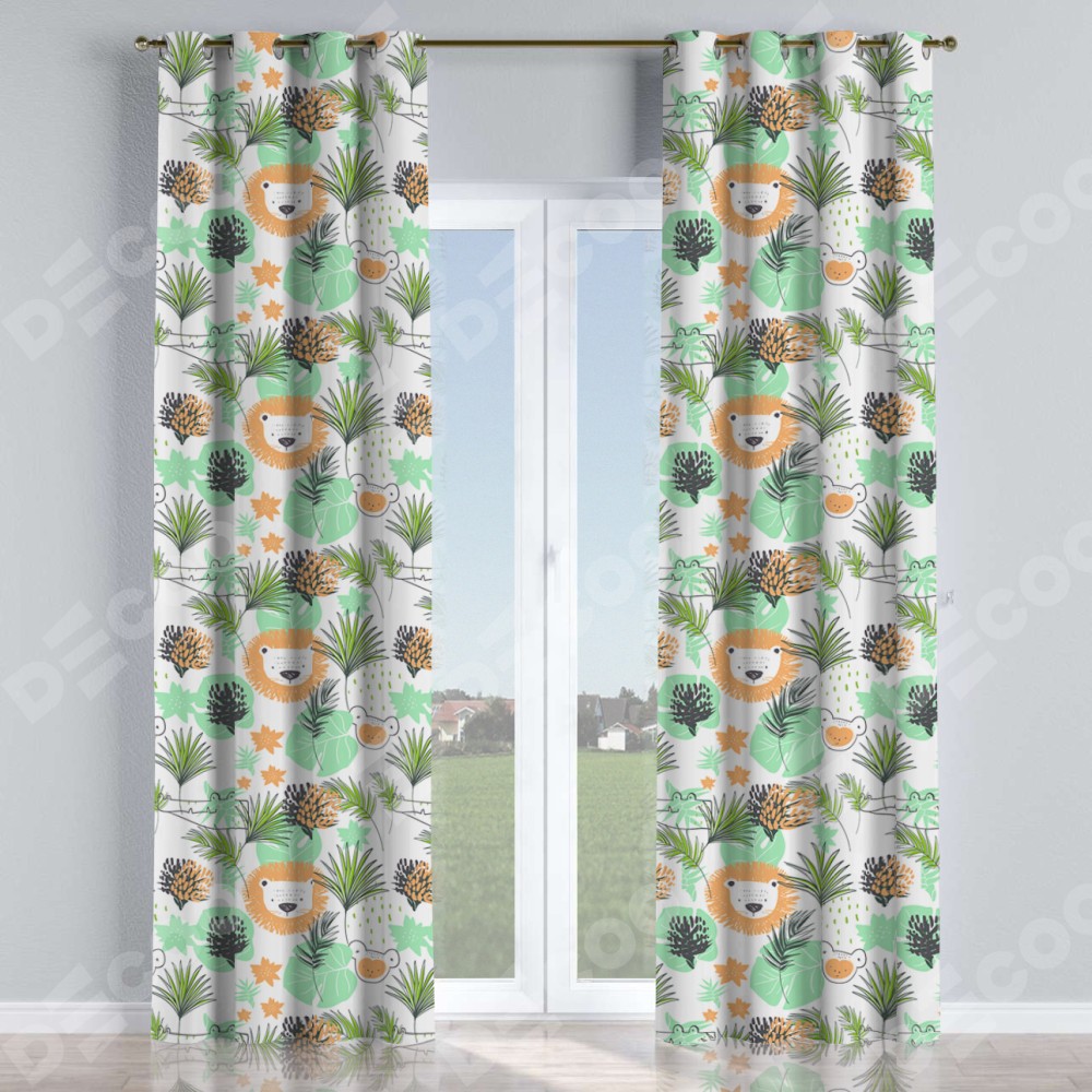 Комплект прямых штор, от производителя «Cortin», пошиты из ткани блэкаут с нанесением сублимационной печати «Животные из джунглей». Данная модель пошита на люверсах, комплектуется на выбор круглым карнизом и подходит для монтажа на стену или потолок. Прямые шторы на люверсах шьются по стандарту с коэффициентом 1/2 (на 100 см. ширины проёма 200 см. ширины ткани), отличительным преимуществом данной модели является простой способ монтажа. Достаточно повесить ее на трубу и штора готова!