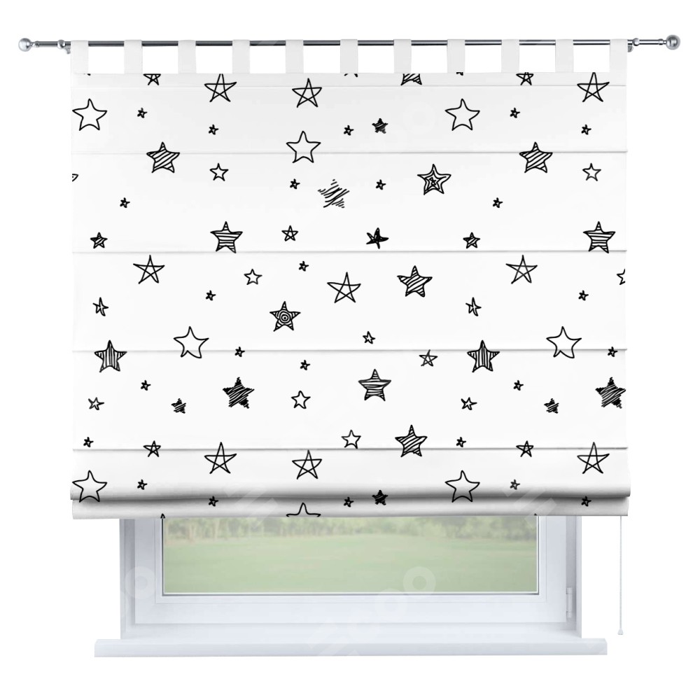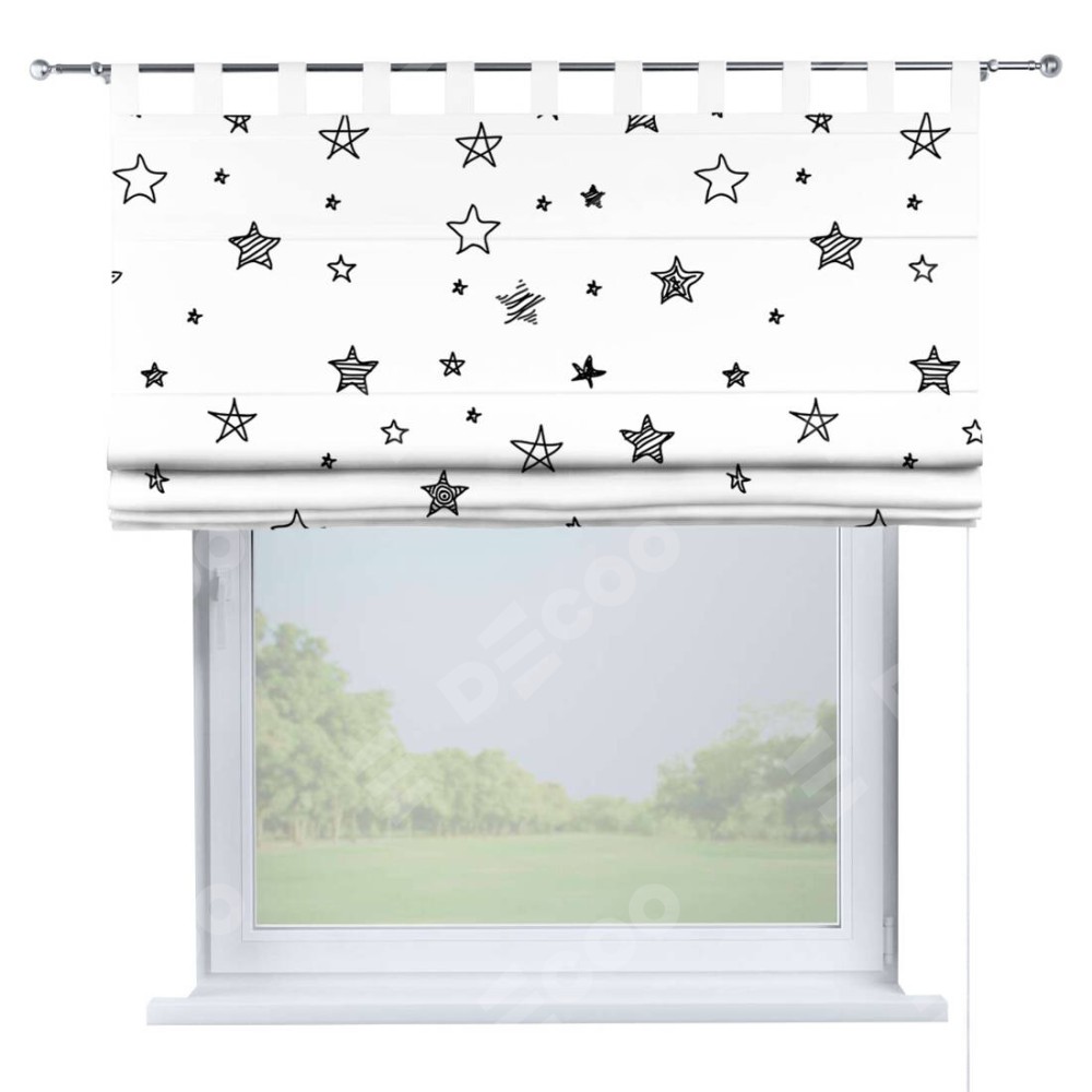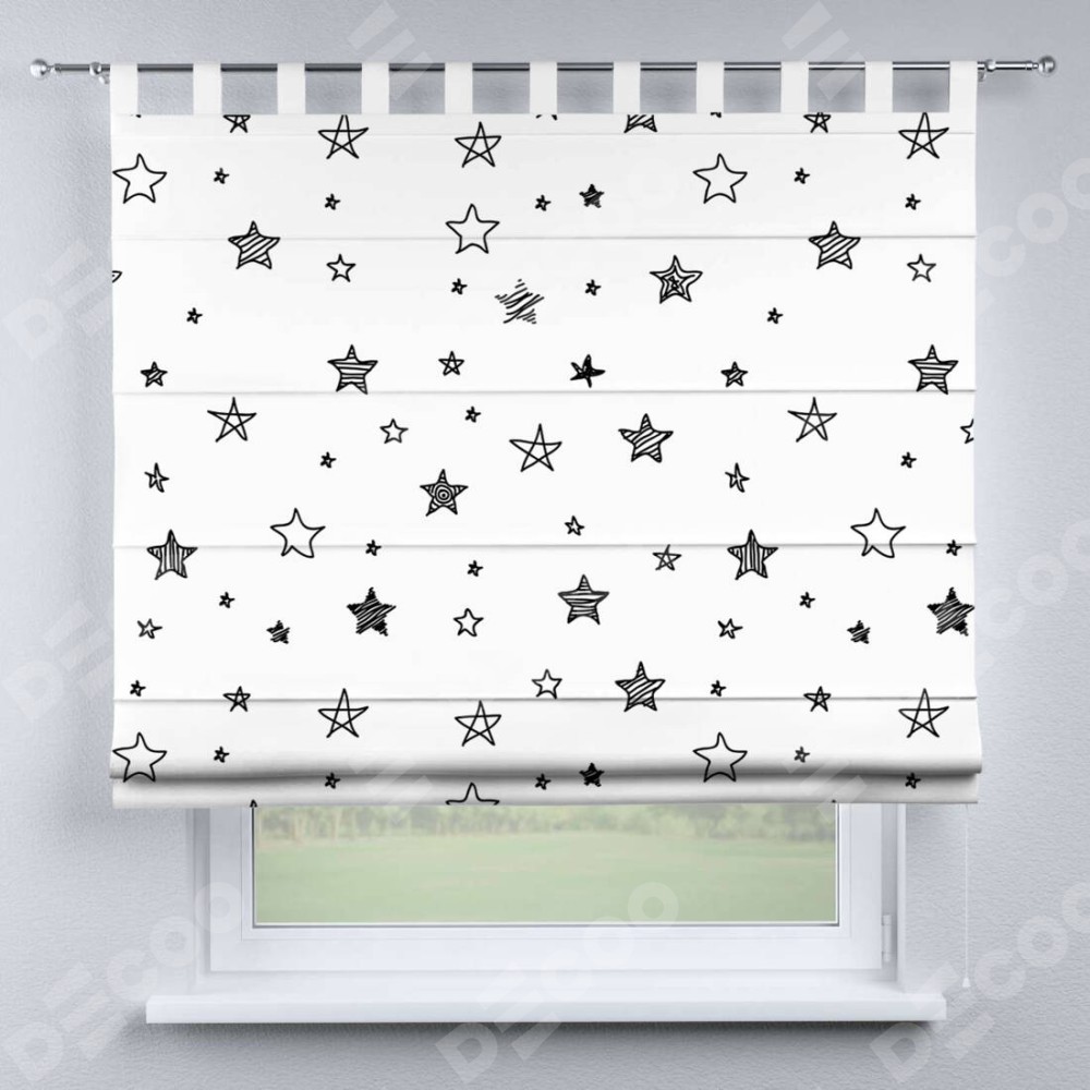 Римская штора производителя «Cortin», используется для проёма, пошита из ткани блэкаут с нанесением сублимационной печати «Звезды». Данная модель пошита на петлях, комплектуется на выбор круглым карнизом и подходит для монтажа на стену. Римская штора на петлях имеет простую систему регулировки высоты, отличительным преимуществом данной модели является простой способ монтажа. Достаточно повесить ее на трубу и штора готова!