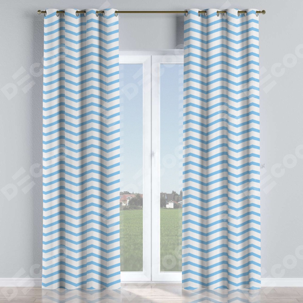 Комплект прямых штор, от производителя «Cortin», пошиты из ткани блэкаут с нанесением сублимационной печати «Зигзаг мелкий». Данная модель пошита на люверсах, комплектуется на выбор круглым карнизом и подходит для монтажа на стену или потолок. Прямые шторы на люверсах шьются по стандарту с коэффициентом 1/2 (на 100 см. ширины проёма 200 см. ширины ткани), отличительным преимуществом данной модели является простой способ монтажа. Достаточно повесить ее на трубу и штора готова!
