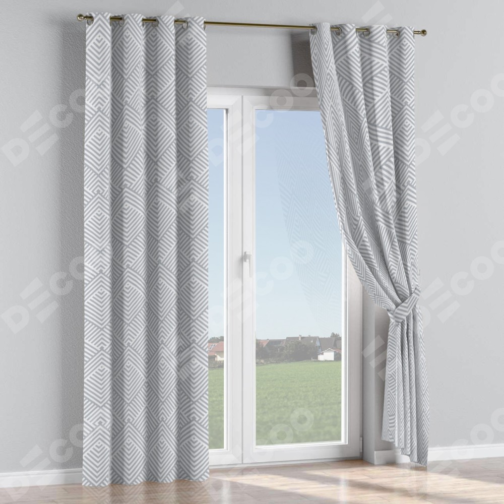 Длина карниза равна ширине окна плюс 30 — 50 см. При расчете длины штанги наконечники не учитываются. Для определения высоты штор измерьте расстояние от верхнего края карниза до пола и отнимите 1 см. Прибавьте 4 см  (гребешок над люверсом) Это габаритный размер вашего изделия.