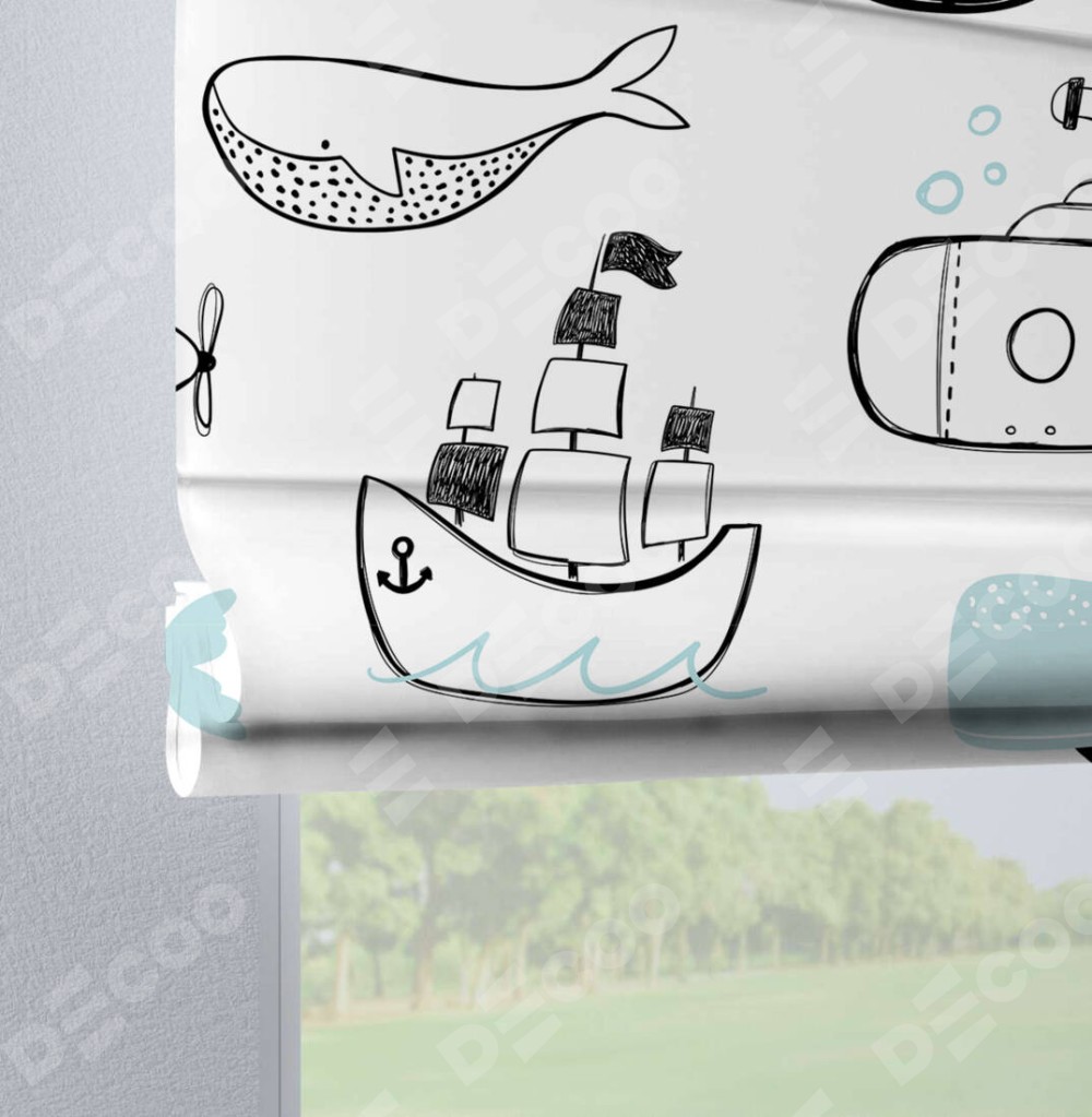Римская штора «Кортин» на петлях «Морская прогулка» отлично подойдёт для интерьера: в детскую.