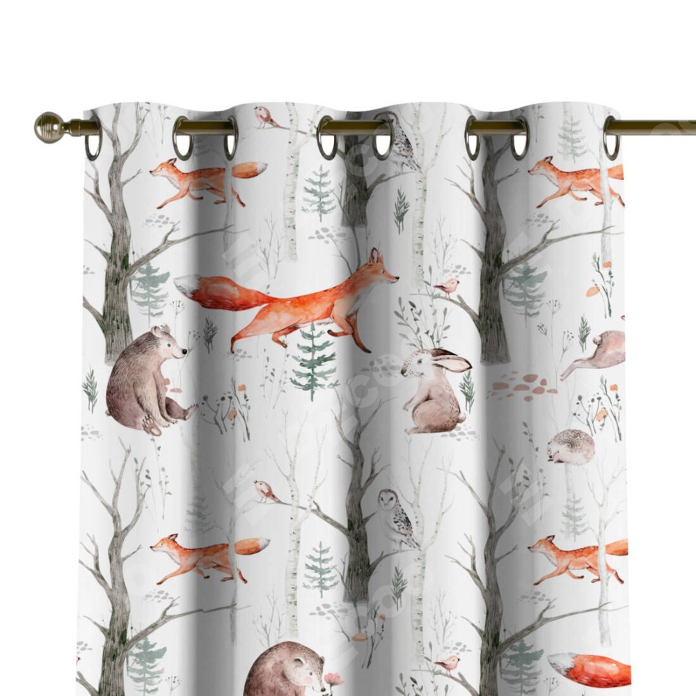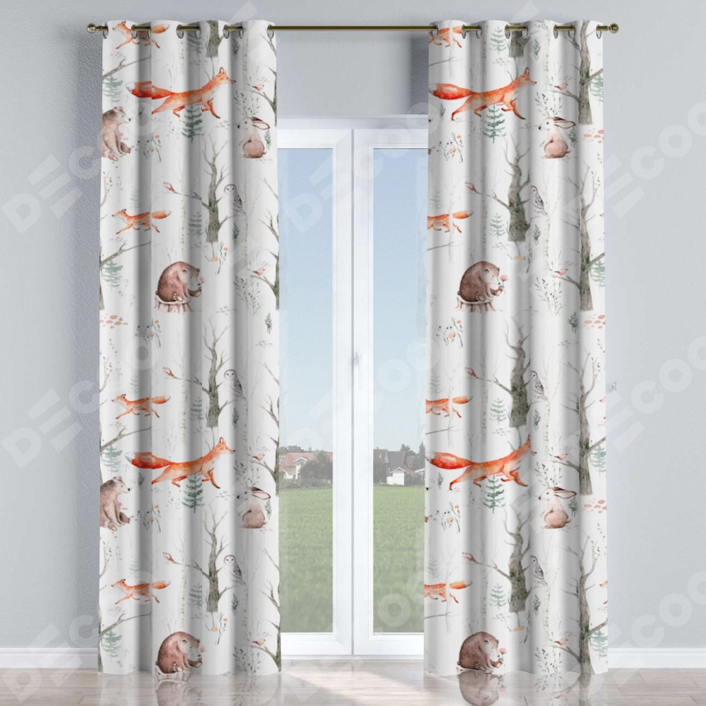 Комплект прямых штор, от производителя «Cortin», пошиты из ткани блэкаут с нанесением сублимационной печати «Лесной питомник». Данная модель пошита на люверсах, комплектуется на выбор круглым карнизом и подходит для монтажа на стену или потолок. Прямые шторы на люверсах шьются по стандарту с коэффициентом 1/2 (на 100 см. ширины проёма 200 см. ширины ткани), отличительным преимуществом данной модели является простой способ монтажа. Достаточно повесить ее на трубу и штора готова!
