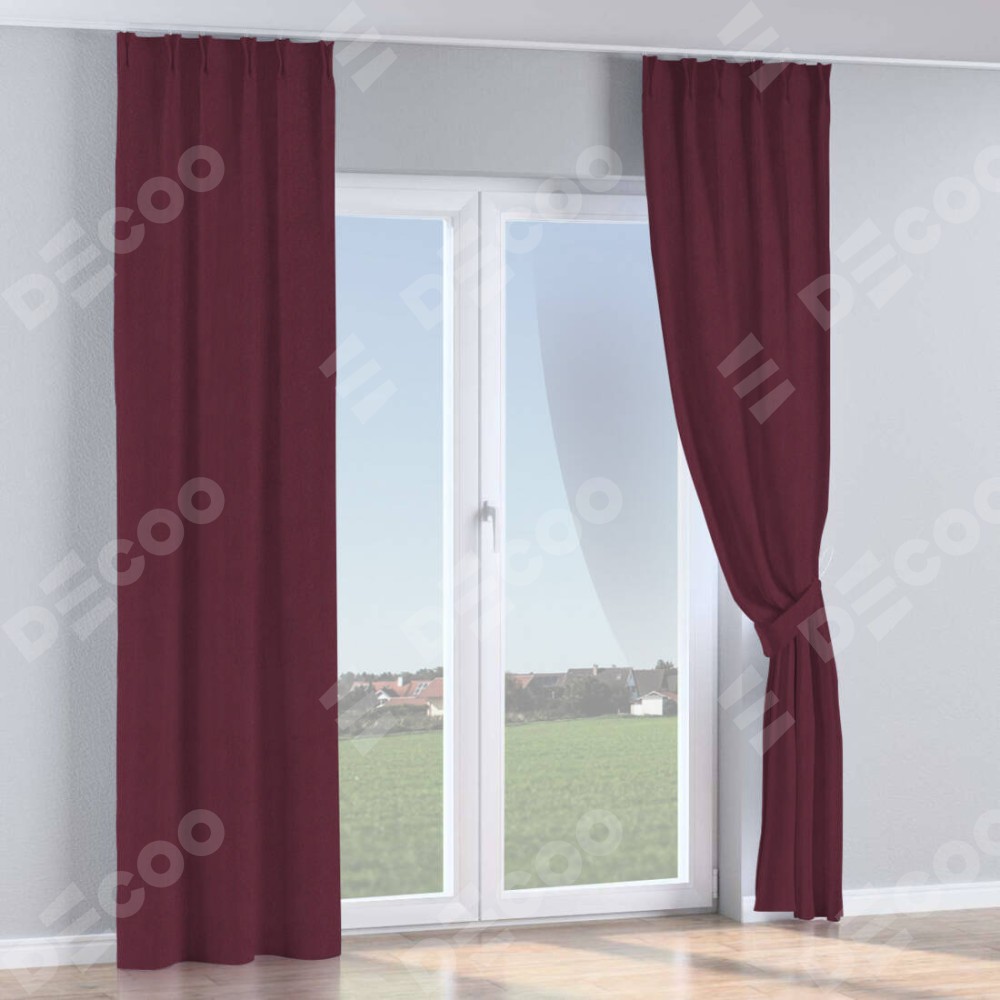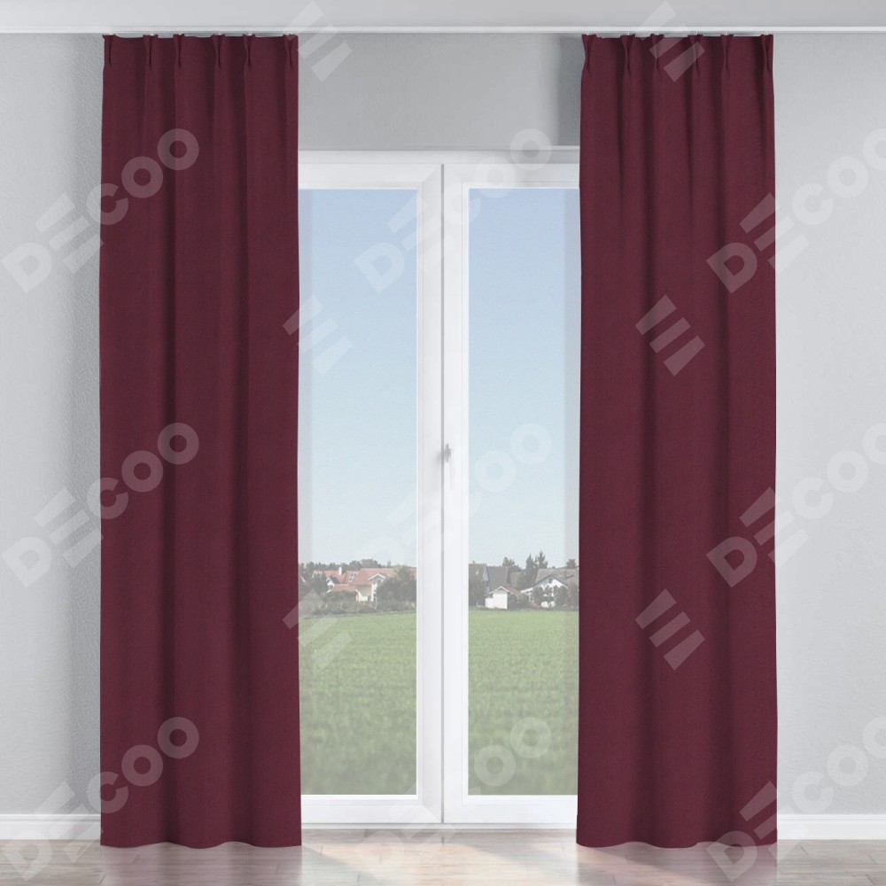 Комплект прямых штор, от производителя «Cortin», пошиты из ткани блэкаут однотонный сиреневый, артикул ткани 29333−2. С изнаночной стороны в верхней части штор пристрачивается шторная лента с декоративными складками «Кустик». Для создания элегантных складок прямые шторы шьются по стандарту с коэффициентом 1:2 (на 100 см. ширины проёма 200 см. ширины ткани).