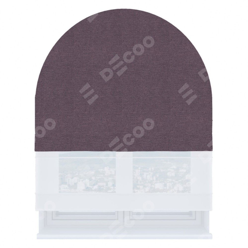 Римская штора день-ночь производителя «Cortin», используется для арочного проёма, пошита из двух полотен, с лицевой стороны лён димаут светло-фиолетовый артикул 83034, вторая ткань тюль (по стандарту комплектуется тюль белого цвета артикул V-01). Штора шьётся по индивидуальным размерам, для данного типа римской шторы возможная ширина от 60 до 300 см. Удобное управление каждой шторой отдельно.