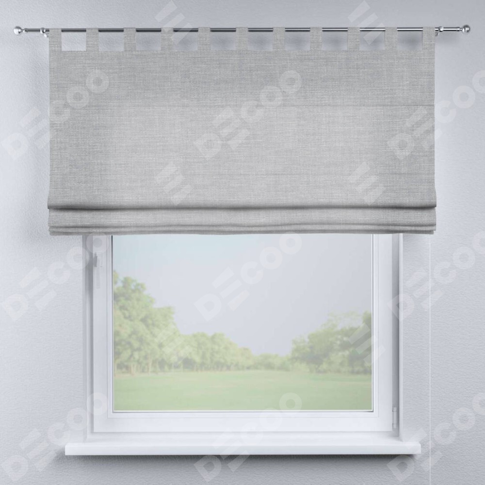 Римская штора производителя «Cortin», используется для проёма, пошита из ткани лён серый, артикул ткани 7440. Данная модель пошита на петлях, комплектуется на выбор круглым карнизом и подходит для монтажа на стену. Римская штора на петлях имеет простую систему регулировки высоты, отличительным преимуществом данной модели является простой способ монтажа. Достаточно повесить ее на трубу и штора готова!
