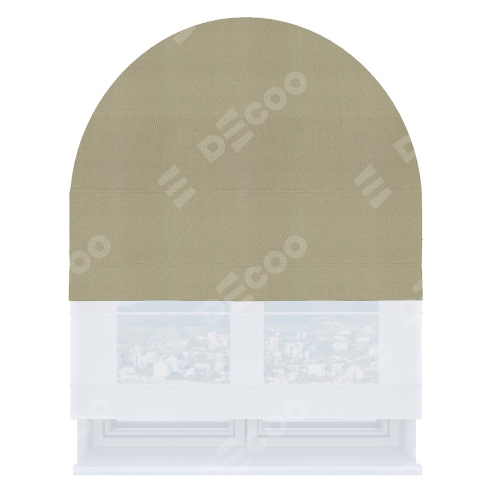 Римская штора день-ночь производителя «Cortin», используется для арочного проёма, пошита из двух полотен, с лицевой стороны pipa блэкаут светло-бежевый артикул 02, вторая ткань тюль (по стандарту комплектуется тюль белого цвета артикул V-01). Штора шьётся по индивидуальным размерам, для данного типа римской шторы возможная ширина от 60 до 300 см. Удобное управление каждой шторой отдельно.