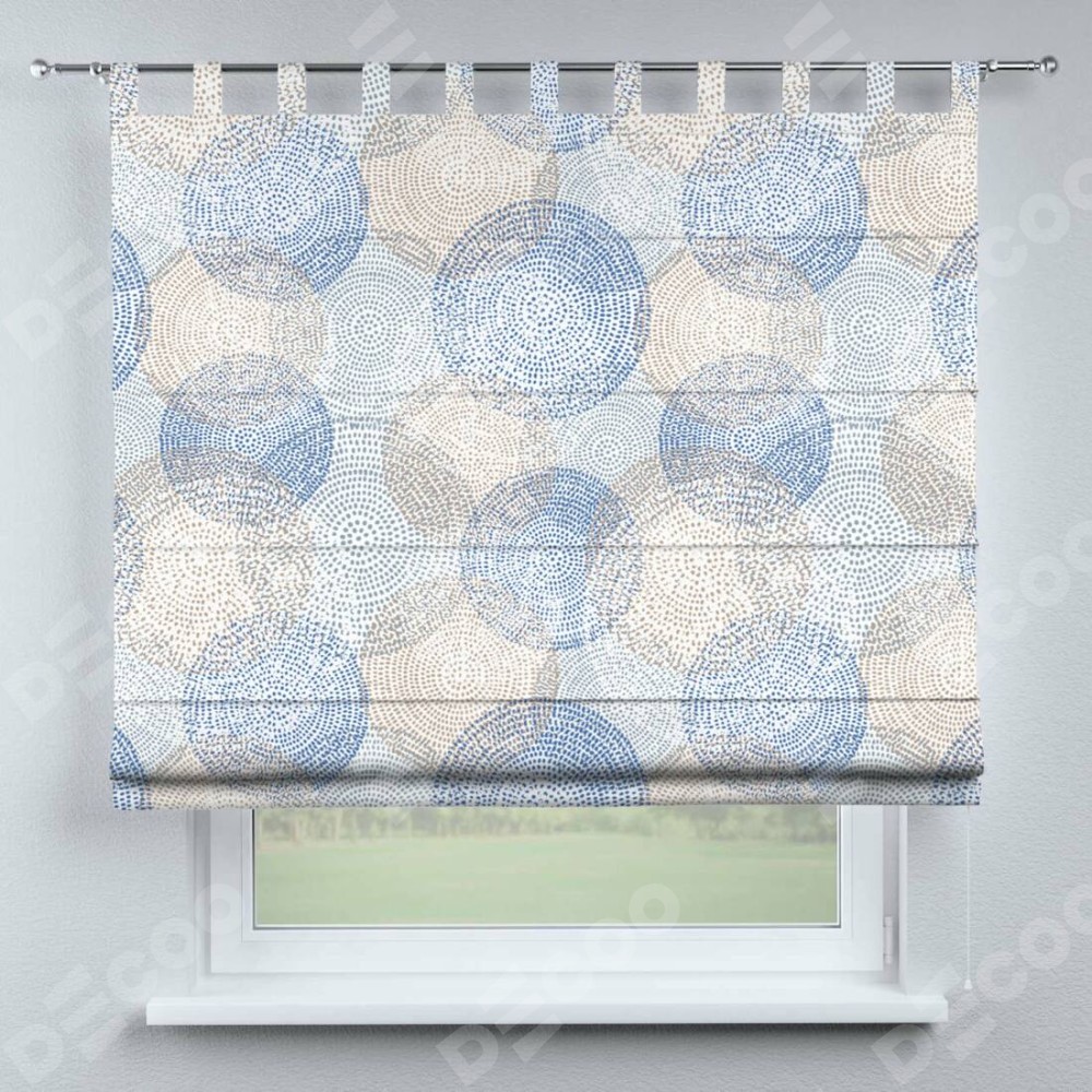 Римская штора производителя «Cortin», используется для проёма, пошита из ткани блэкаут с нанесением сублимационной печати «Абстрактные круги». Данная модель пошита на петлях, комплектуется на выбор круглым карнизом и подходит для монтажа на стену. Римская штора на петлях имеет простую систему регулировки высоты, отличительным преимуществом данной модели является простой способ монтажа. Достаточно повесить ее на трубу и штора готова!