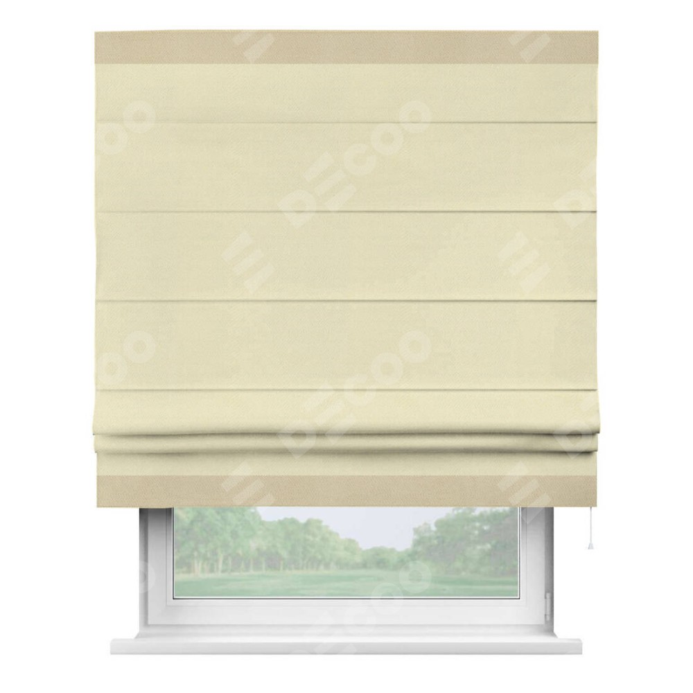 Римская штора производителя «Cortin», используется для проёма, пошита из ткани блэкаут однотонный бежевый, артикул ткани 88283. Отделка шторы кантом «Горизонт», ткань для канта используется из блэкаута однотонного разной расцветки на выбор. Имеет универсальный механизм и подходит для монтажа: на потолок, на стену и в нишу.