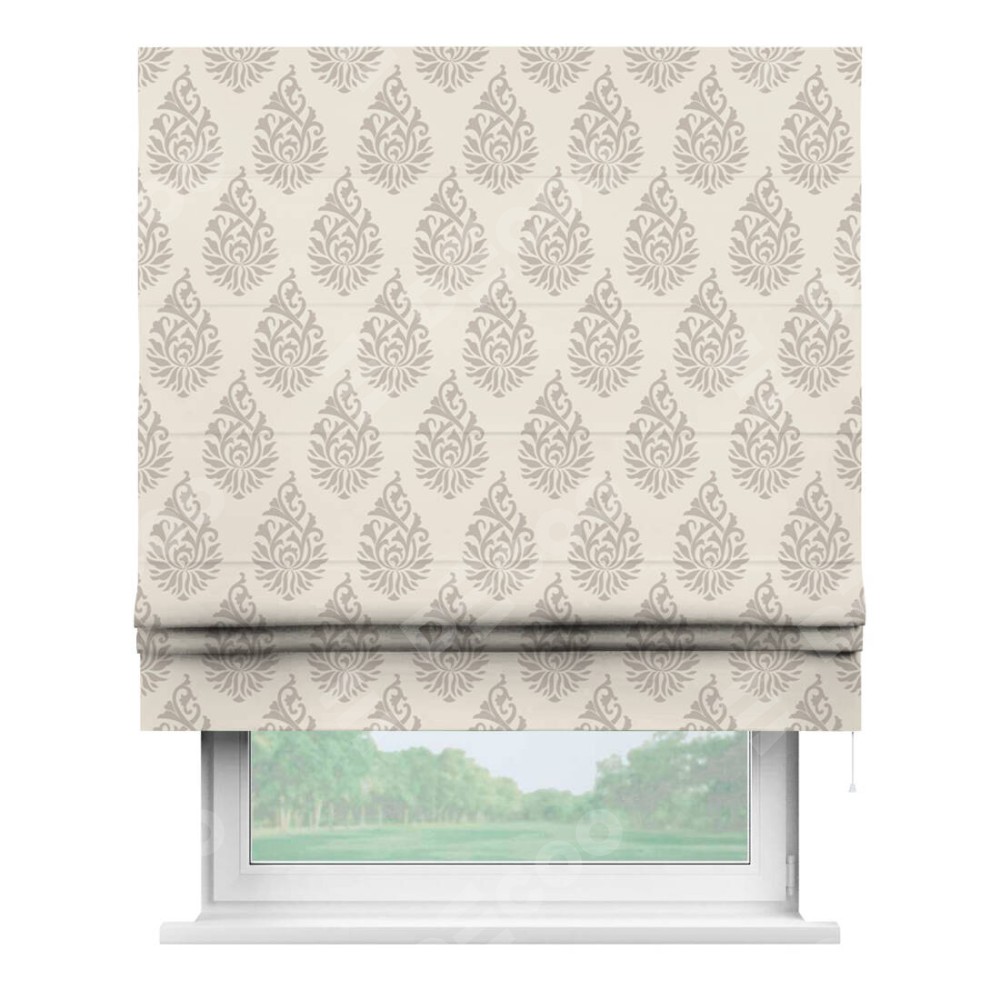 Римская штора производителя «Cortin», используется для проёма, пошита из ткани блэкаут с нанесением сублимационной печати «Изящный кулон». Имеет универсальный механизм и подходит для монтажа: на потолок, на стену и в нишу.