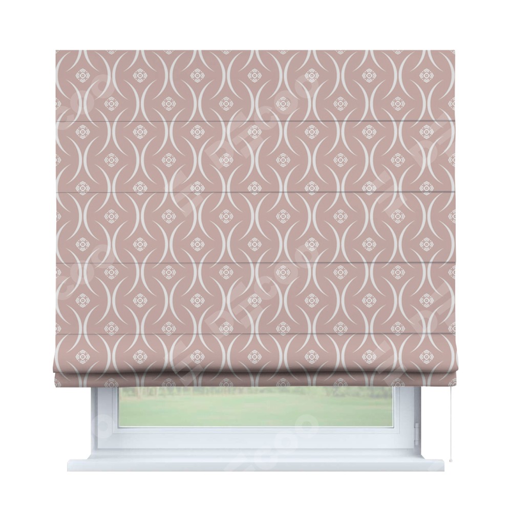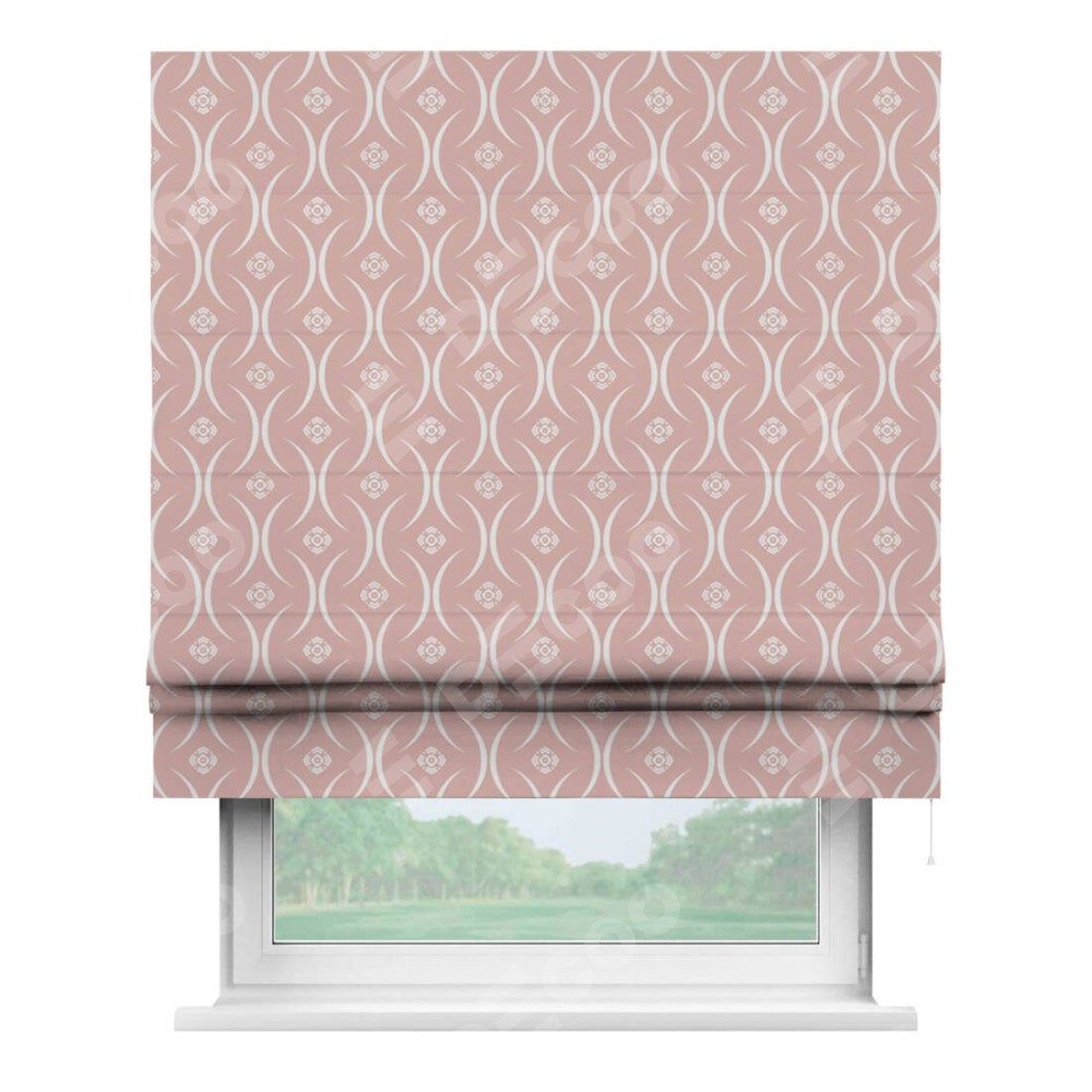 Римская штора производителя «Cortin», используется для проёма, пошита из ткани блэкаут с нанесением сублимационной печати «Воздушный узор бежевый». Имеет универсальный механизм и подходит для монтажа: на потолок, на стену и в нишу.