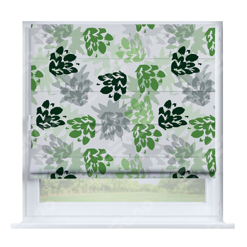 Римская штора производителя «Cortin», устанавливается на створку окна, пошита из ткани блэкаут с нанесением сублимационной печати «Зелёный луг». Штора шьётся по индивидуальным размерам, для данного типа римской шторы возможная ширина от 35 до 150 см., высота до 250 см.