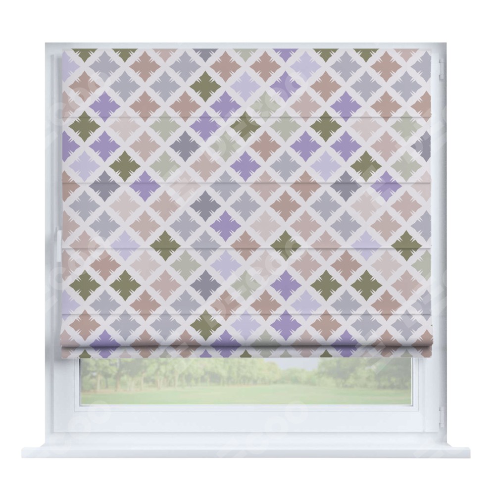 Римская штора производителя «Cortin», устанавливается на створку окна, пошита из ткани блэкаут с нанесением сублимационной печати «Фигурные плитки». Штора шьётся по индивидуальным размерам, для данного типа римской шторы возможная ширина от 35 до 150 см., высота до 250 см.