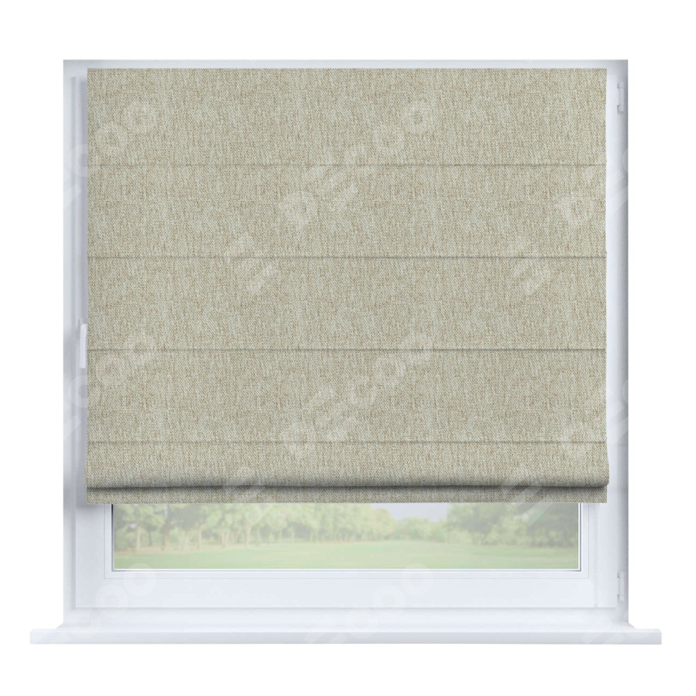 Римская штора производителя «Cortin», устанавливается на створку окна, пошита из ткани стиф димаут светло-бежевый, артикул 18084. Штора шьётся по индивидуальным размерам, для данного типа римской шторы возможная ширина от 35 до 150 см., высота до 250 см.