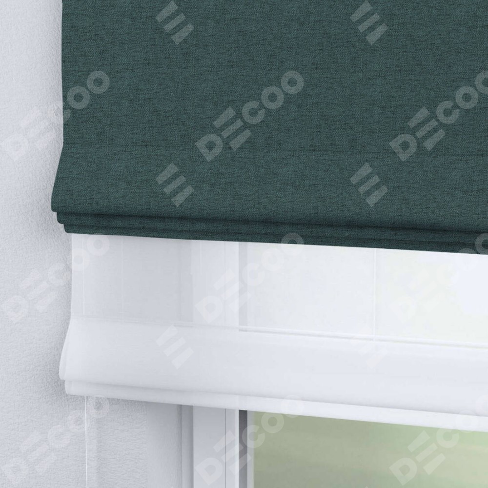 Римская штора день-ночь производителя «Cortin», используется для проёма, пошита из двух полотен, с лицевой стороны стиф димаут сине-зелёный артикул 18194, вторая ткань тюль (по стандарту комплектуется тюль белого цвета артикул V-01). Имеет универсальный механизм и подходит для монтажа: на потолок, на стену и в нишу.