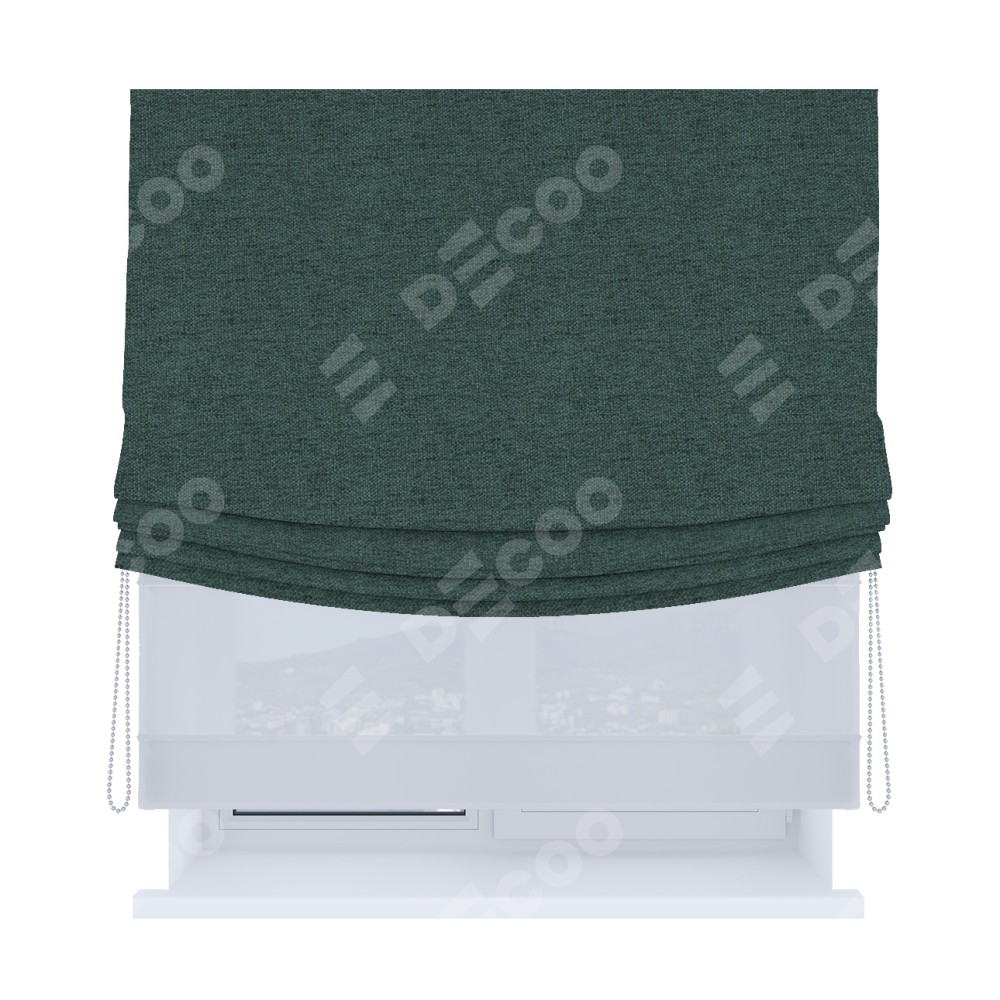 Римская штора день-ночь производителя «Cortin», используется для проёма, пошита из двух полотен, с лицевой стороны стиф димаут сине-зелёный артикул 18194, вторая ткань тюль (по стандарту комплектуется тюль белого цвета артикул V-01). Имеет универсальный механизм и подходит для монтажа: на потолок, на стену и в нишу. Удобное управление каждой шторой отдельно.