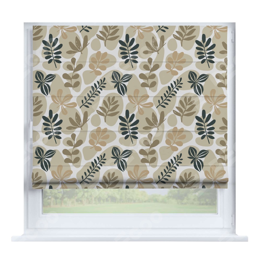 Римская штора производителя «Cortin», устанавливается на створку окна, пошита из ткани блэкаут с нанесением сублимационной печати «Бежевый сад». Штора шьётся по индивидуальным размерам, для данного типа римской шторы возможная ширина от 35 до 150 см., высота до 250 см.