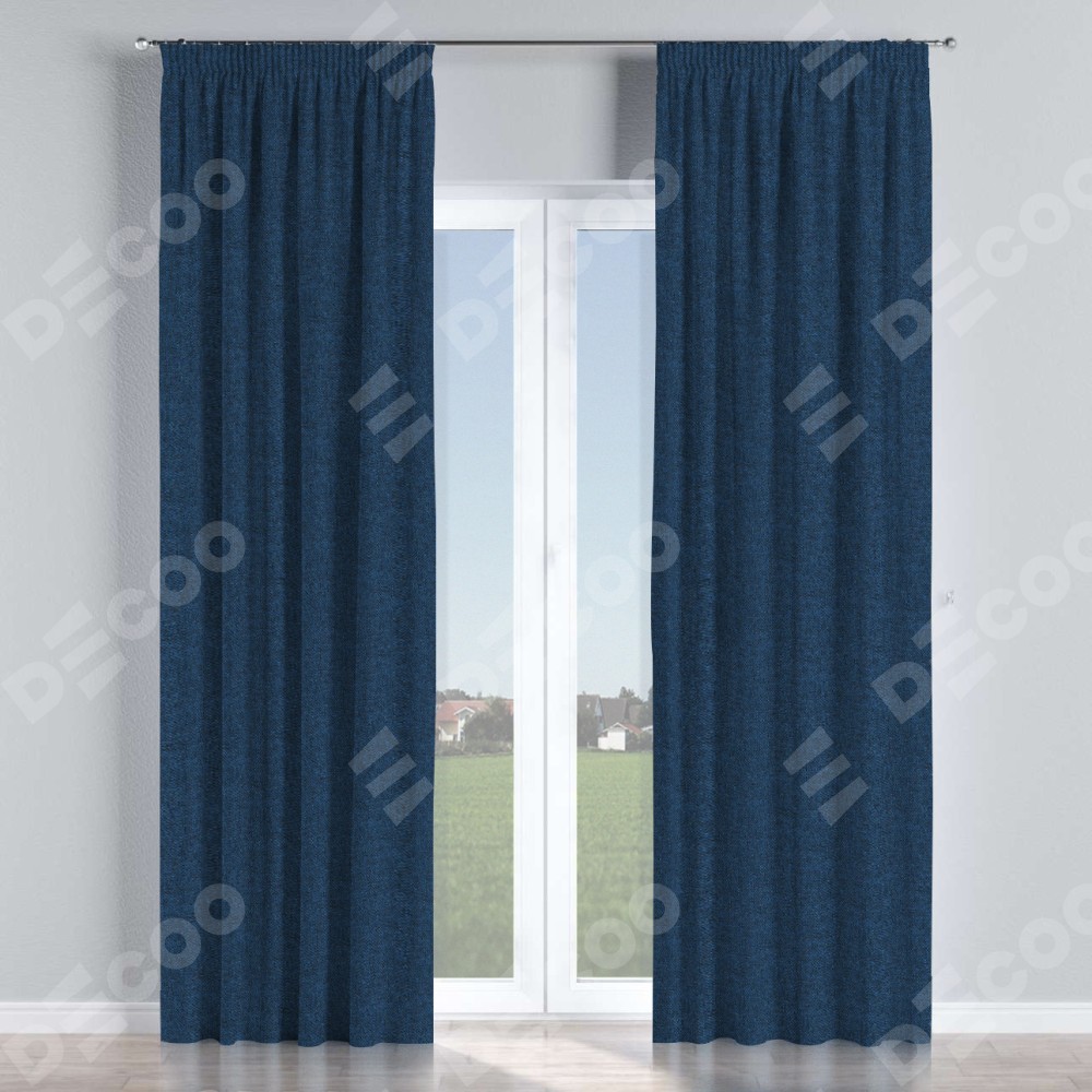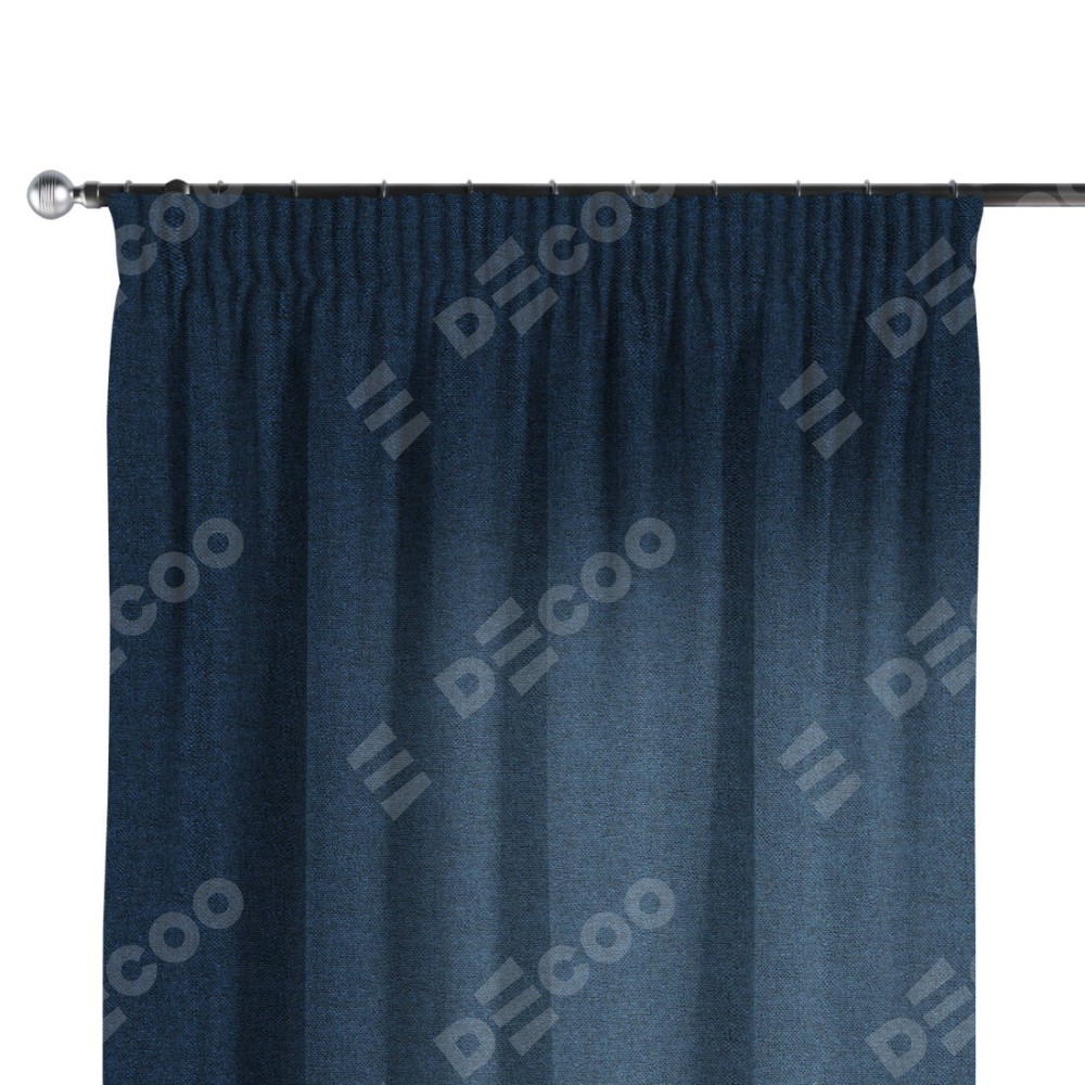 Комплект прямых штор, от производителя «Cortin», пошиты из ткани лён кашемир тёмно-синий, артикул ткани 17215. С изнаночной стороны в верхней части штор пристрачивается шторная лента с декоративными складками «Карандаш». Для создания элегантных складок прямые шторы шьются по стандарту с коэффициентом 1:2 (на 100 см. ширины проёма 200 см. ширины ткани).