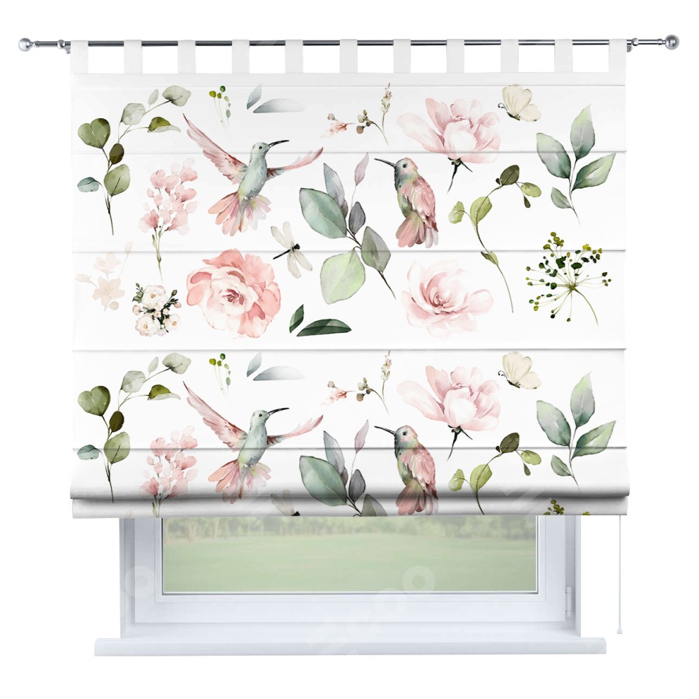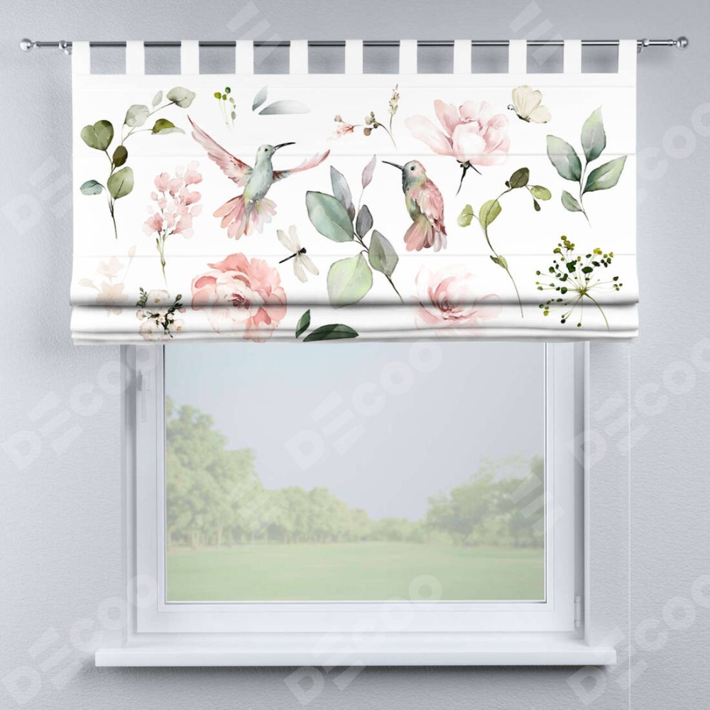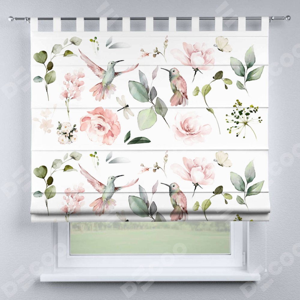 Римская штора производителя «Cortin», используется для проёма, пошита из ткани блэкаут с нанесением сублимационной печати «Уютный сад». Данная модель пошита на петлях, комплектуется на выбор круглым карнизом и подходит для монтажа на стену. Римская штора на петлях имеет простую систему регулировки высоты, отличительным преимуществом данной модели является простой способ монтажа. Достаточно повесить ее на трубу и штора готова!