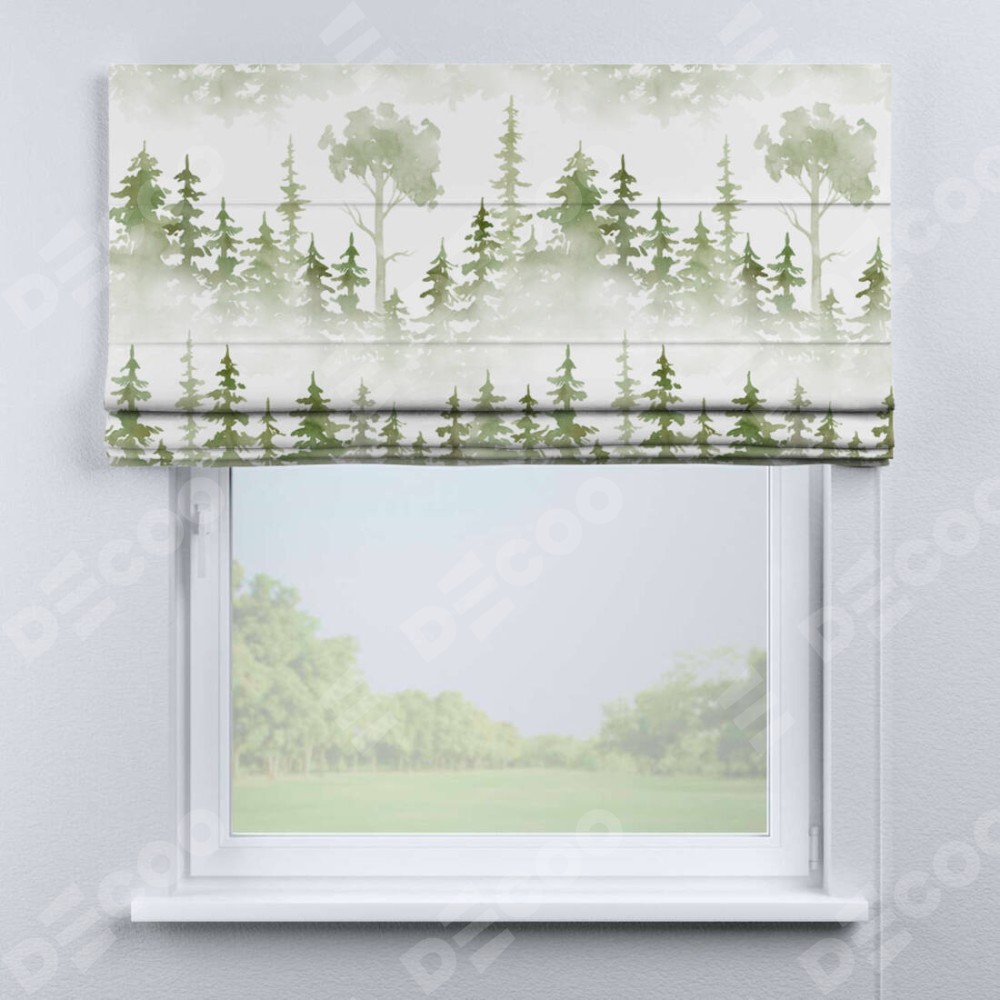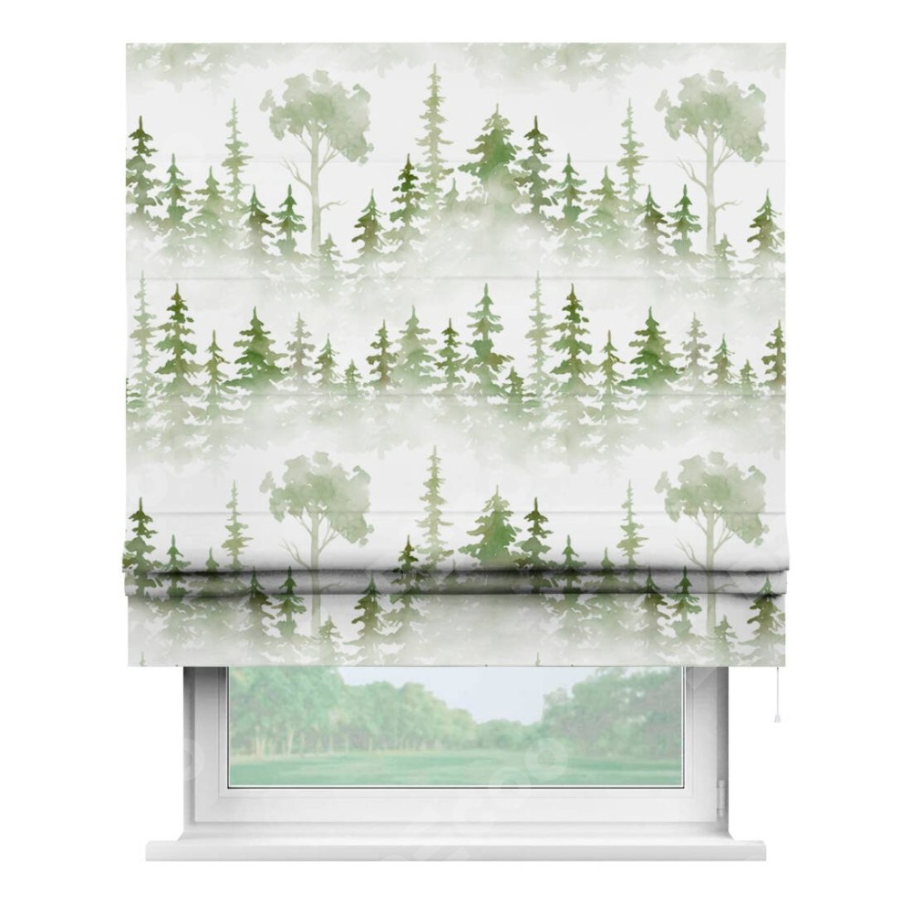 Римская штора «Кортин» для проема «Туманный лес» отлично подойдёт для интерьера: на балкон, в гостиную и в спальню.