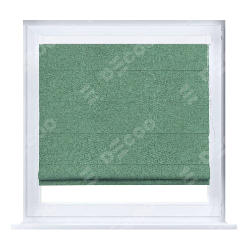 Римская штора производителя «Cortin», устанавливается на створку окна, пошита из ткани лён блэкаут светло-бирюзовый, артикул 69443. Штора шьётся по индивидуальным размерам, для данного типа римской шторы возможная ширина от 35 до 150 см., высота до 250 см.