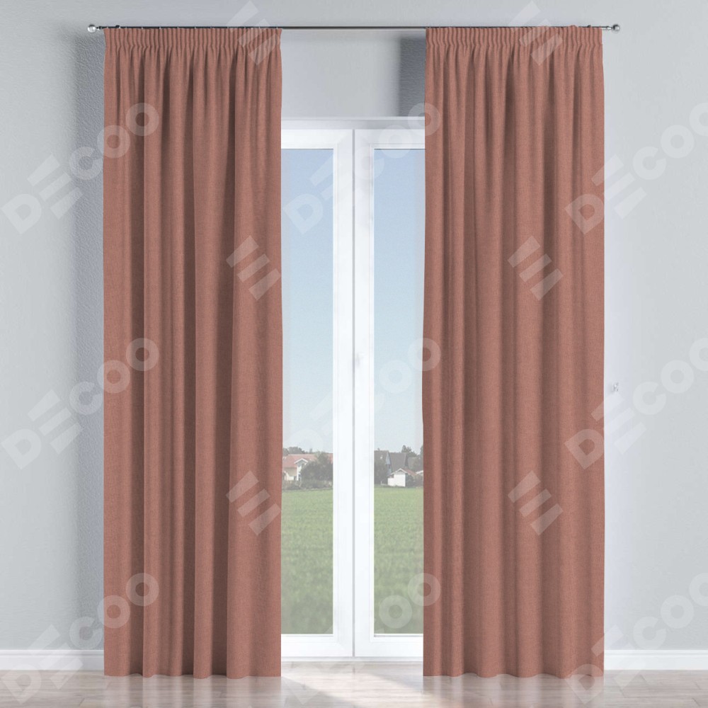 Комплект прямых штор, от производителя «Cortin», пошиты из ткани лён блэкаут розовый, артикул ткани 69575. С изнаночной стороны в верхней части штор пристрачивается шторная лента с декоративными складками «Карандаш». Для создания элегантных складок прямые шторы шьются по стандарту с коэффициентом 1:2 (на 100 см. ширины проёма 200 см. ширины ткани).