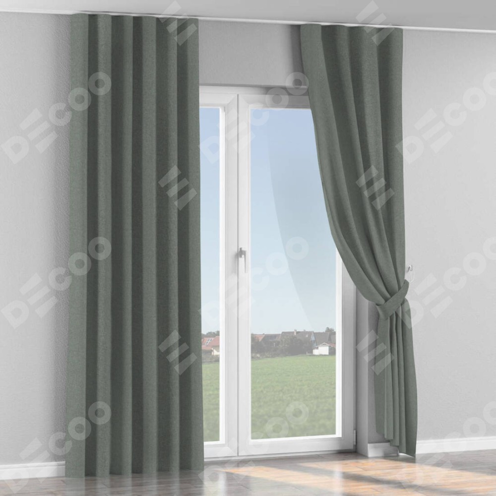 Комплект прямых штор, от производителя «Cortin», пошиты из ткани лён блэкаут серый, артикул ткани 69447. С изнаночной стороны в верхней части штор пристрачивается шторная лента с декоративными складками «Волна». Для создания элегантных складок прямые шторы шьются по стандарту с коэффициентом 1:2 (на 100 см. ширины проёма 200 см. ширины ткани).