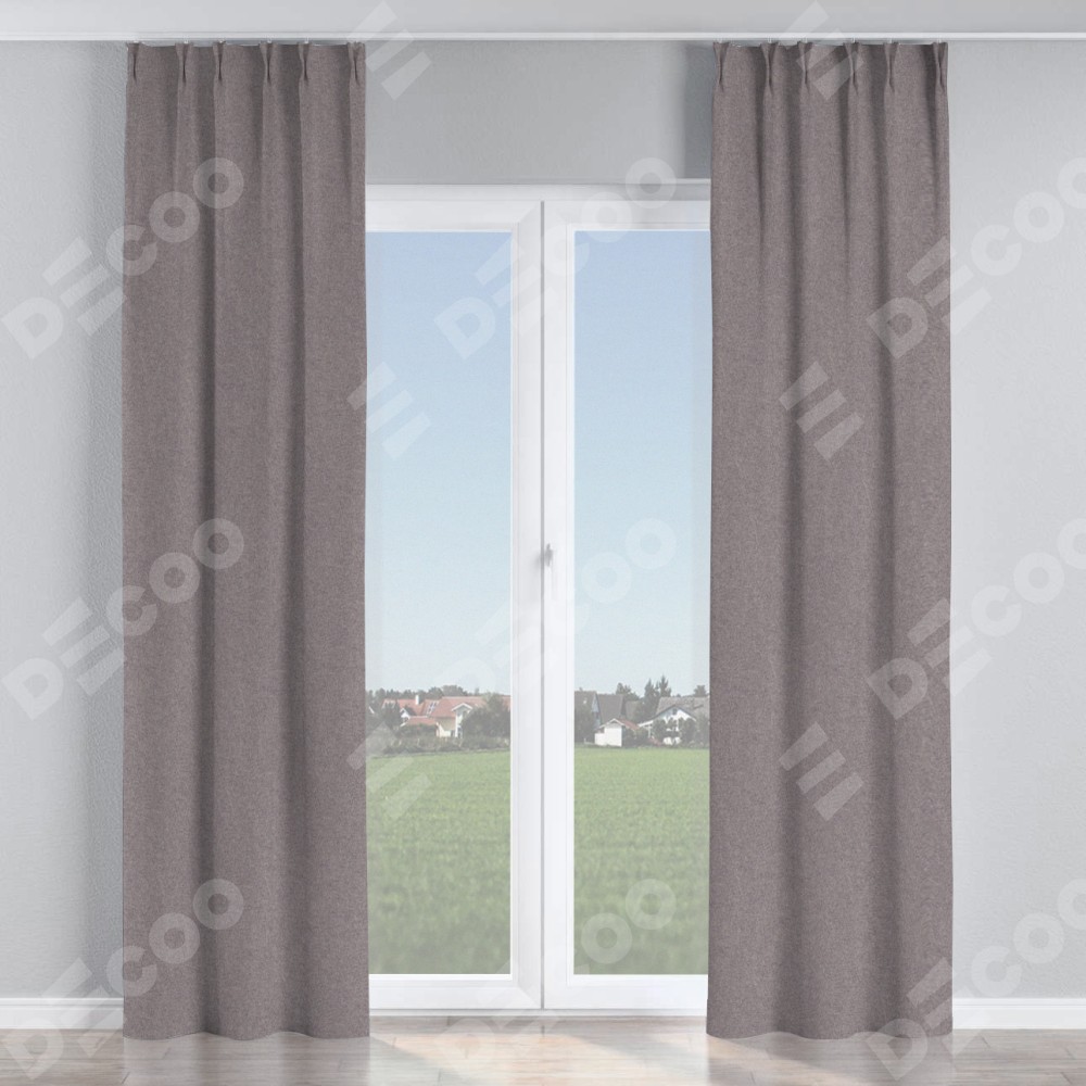 Комплект прямых штор, от производителя «Cortin», пошиты из ткани лён блэкаут сиреневый, артикул ткани 69576. С изнаночной стороны в верхней части штор пристрачивается шторная лента с декоративными складками «Кустик». Для создания элегантных складок прямые шторы шьются по стандарту с коэффициентом 1:2 (на 100 см. ширины проёма 200 см. ширины ткани).