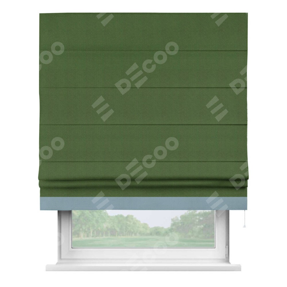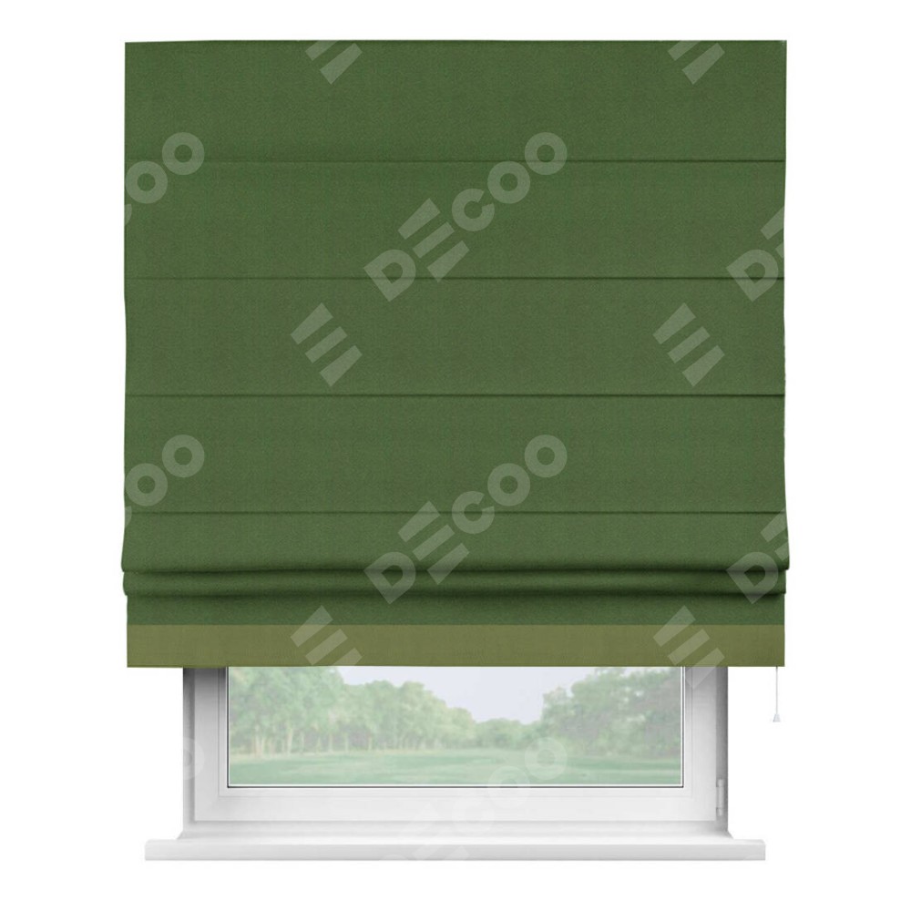 Римская штора «Кортин» с кантом Джестер, для проема, ткань блэкаут однотонный зелёный перламутр