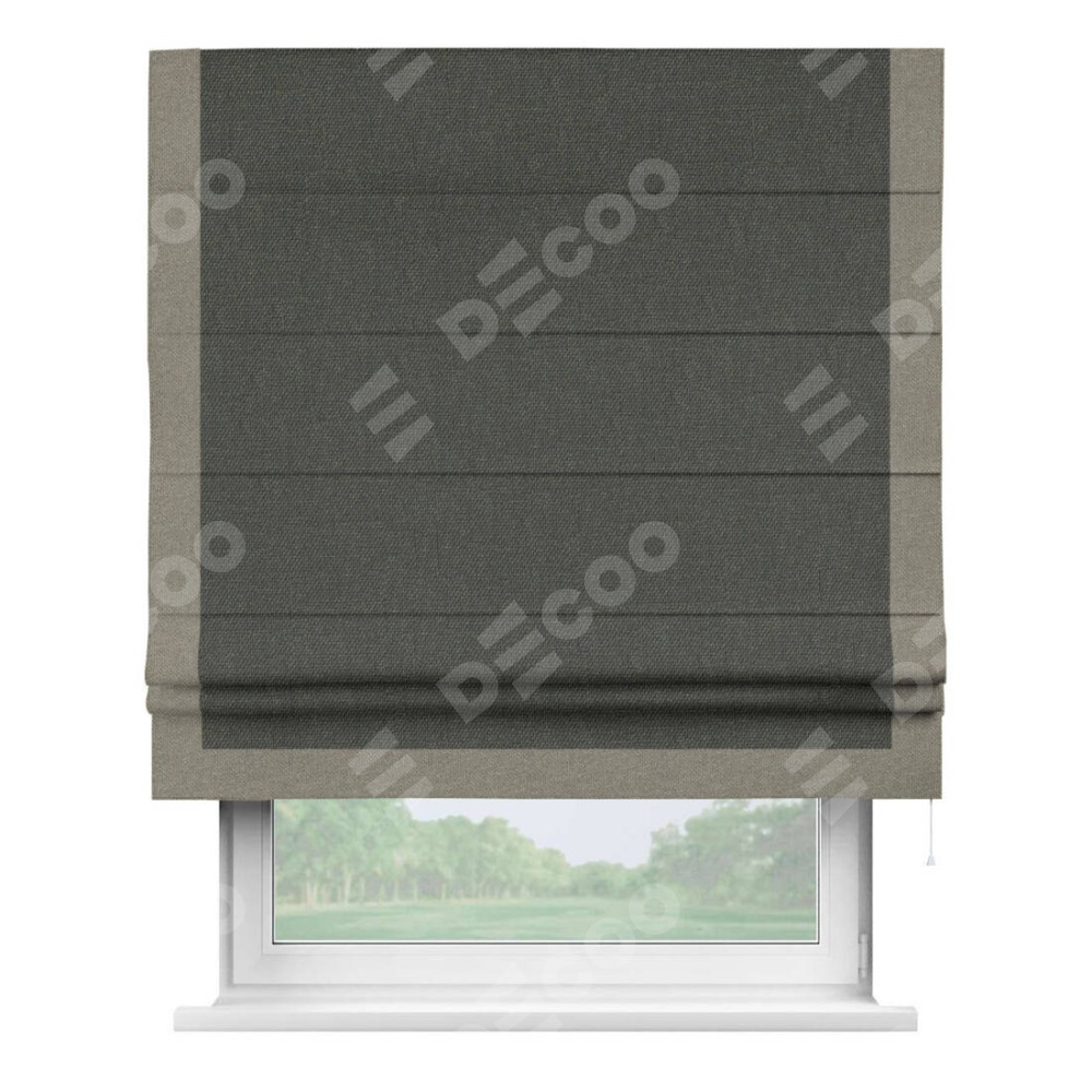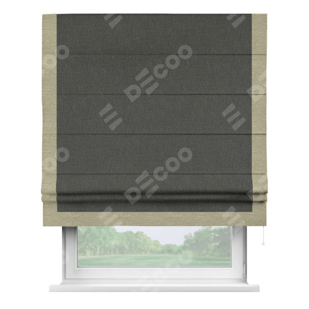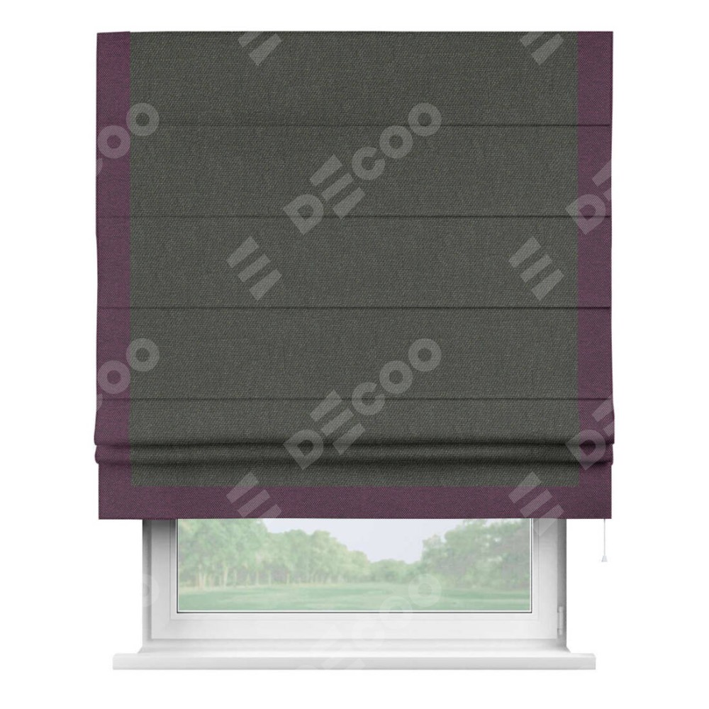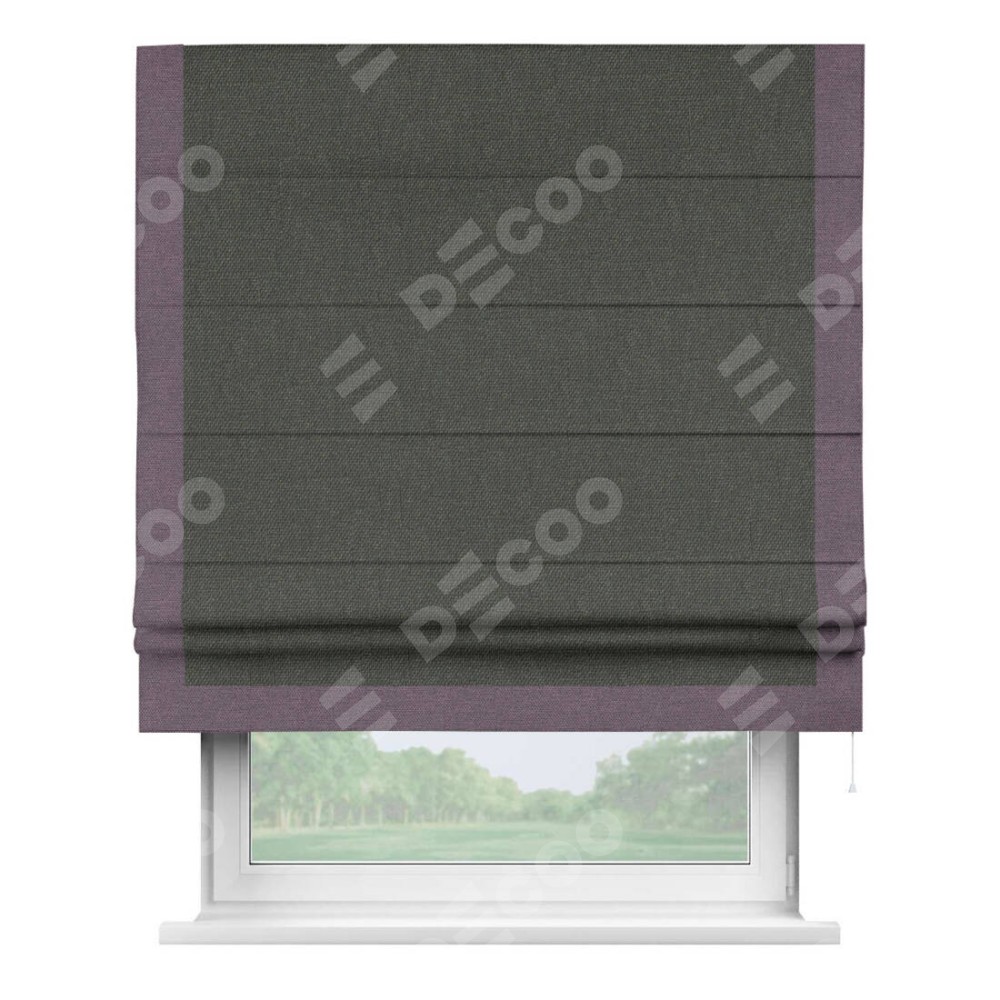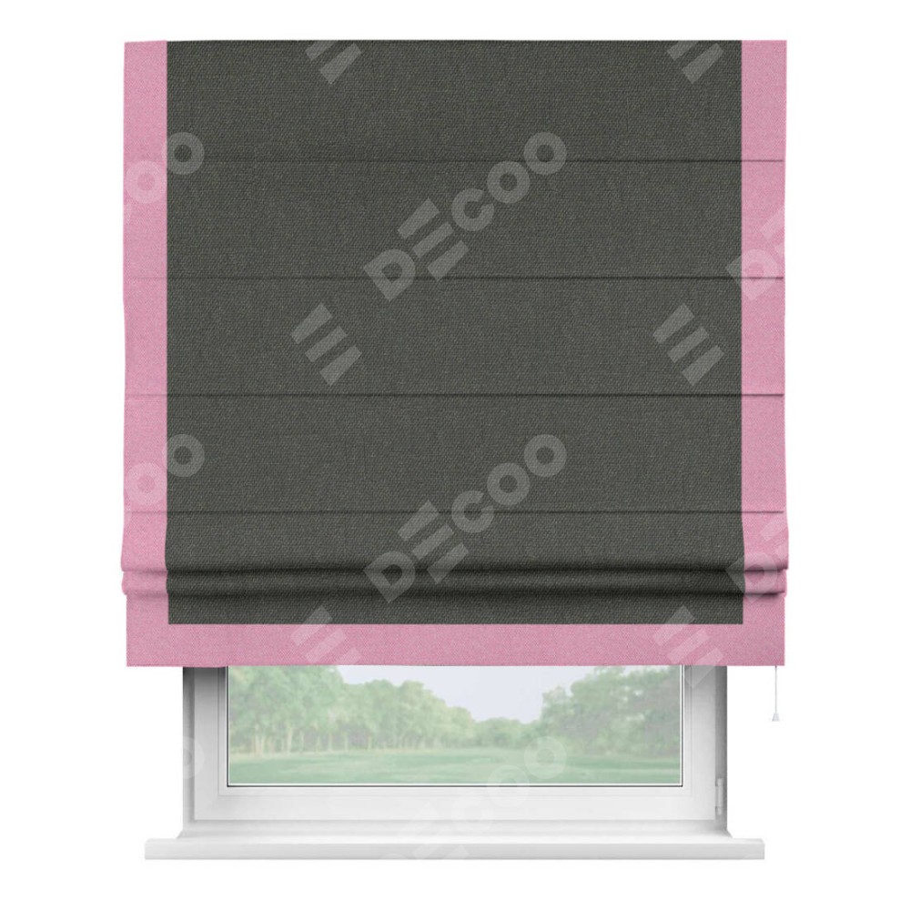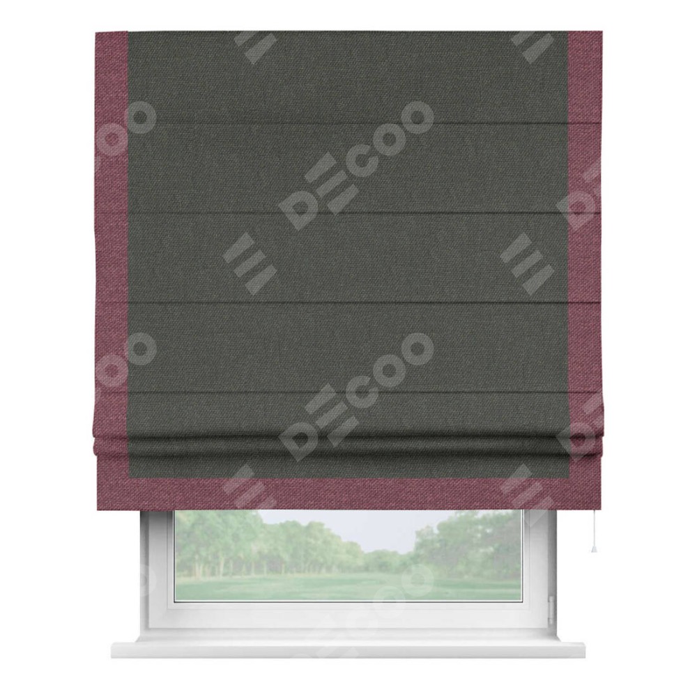 Римская штора «Кортин» с кантом Виктория, для проема, ткань лён димаут, графитово-серый