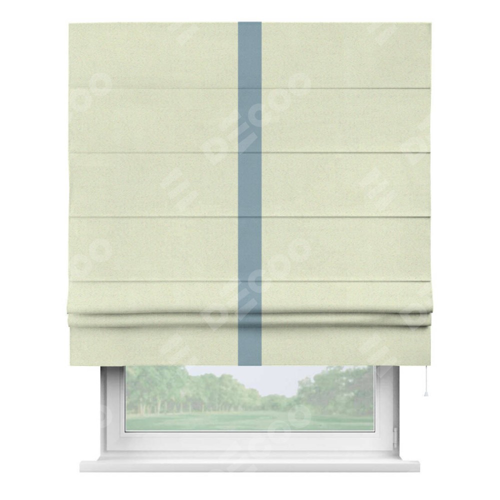 Римская штора производителя «Cortin», используется для проёма, пошита из ткани блэкаут однотонный сливочный, артикул ткани 6668−02. Отделка шторы кантом «Хайвей», ткань для канта используется из блэкаута однотонного разной расцветки на выбор. Имеет универсальный механизм и подходит для монтажа: на потолок, на стену и в нишу.