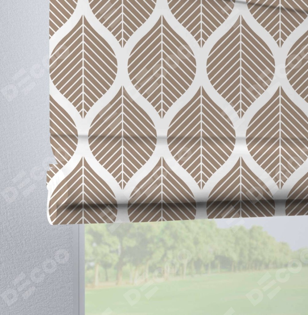 Римская штора на петлях «Листья геометрия» отлично подойдёт для интерьера: в гостиную, в спальню и на балкон.