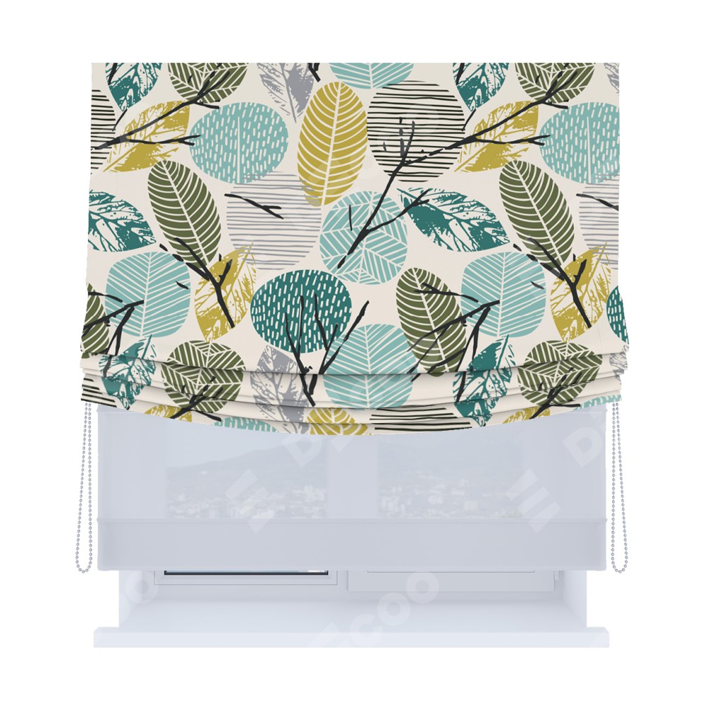 Римская штора «Кортин», день-ночь с мягкими складками, «Ботанический сад»