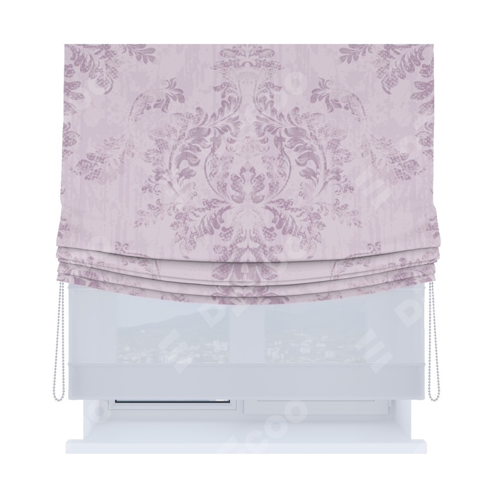 Римская штора «Кортин», день-ночь с мягкими складками, «Винтажный узор сиреневый»