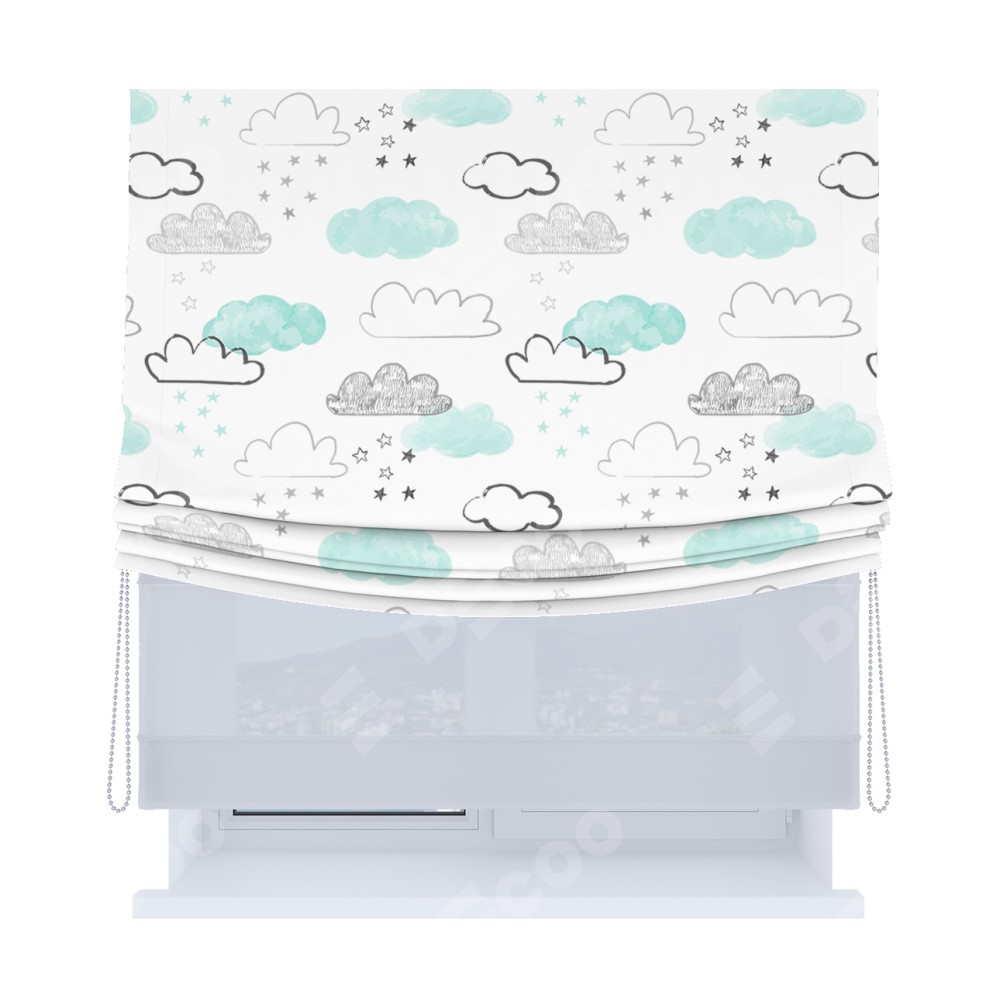 Римская штора «Кортин», день-ночь с мягкими складками, «Облака и звёзды»