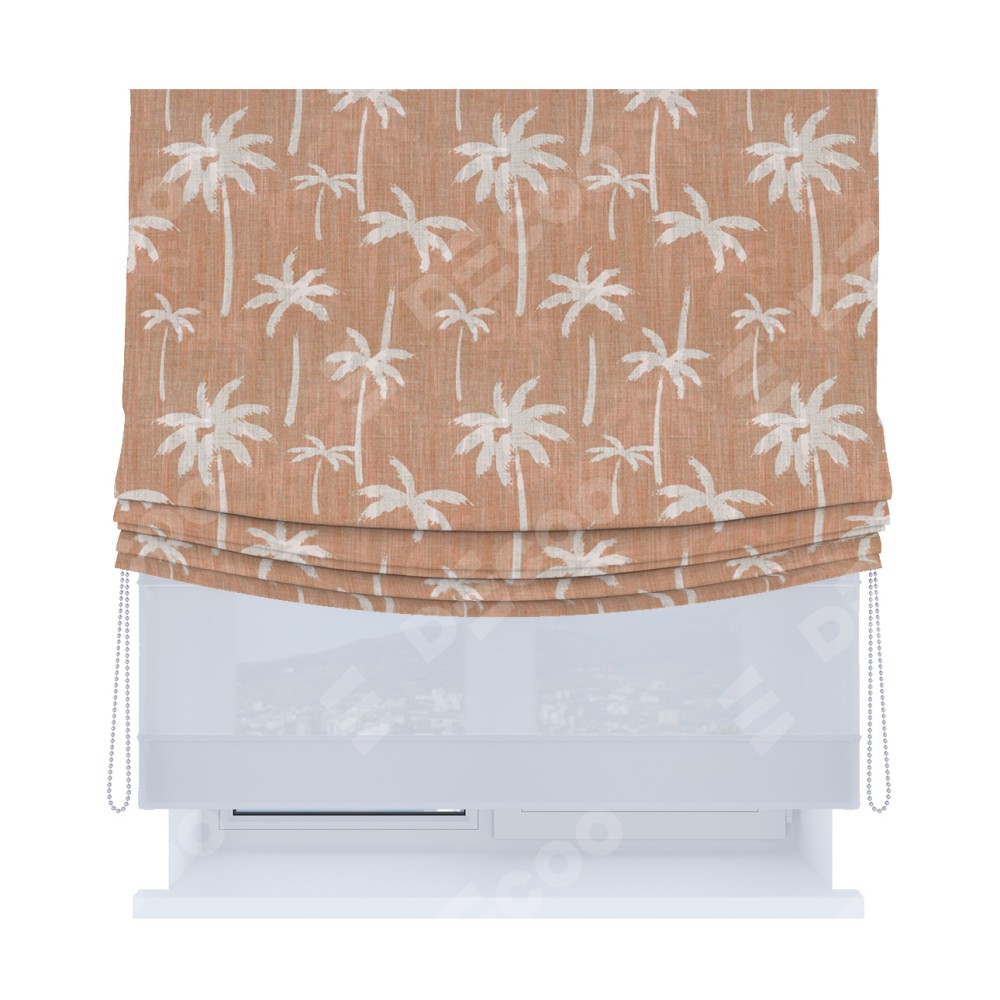 Римская штора «Кортин», день-ночь с мягкими складками, «Пальмы на закате»