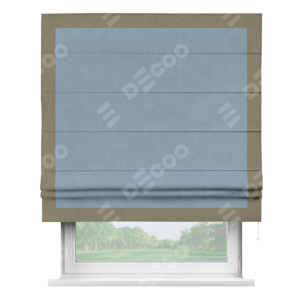 Римская штора «Кортин» с кантом Чесс, для проема, лён блэкаут голубой