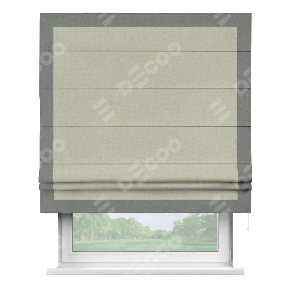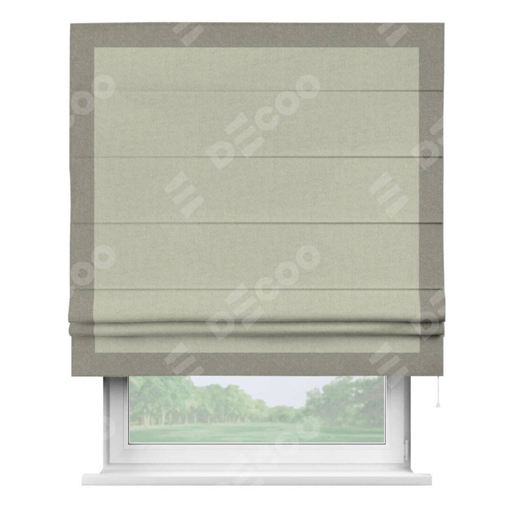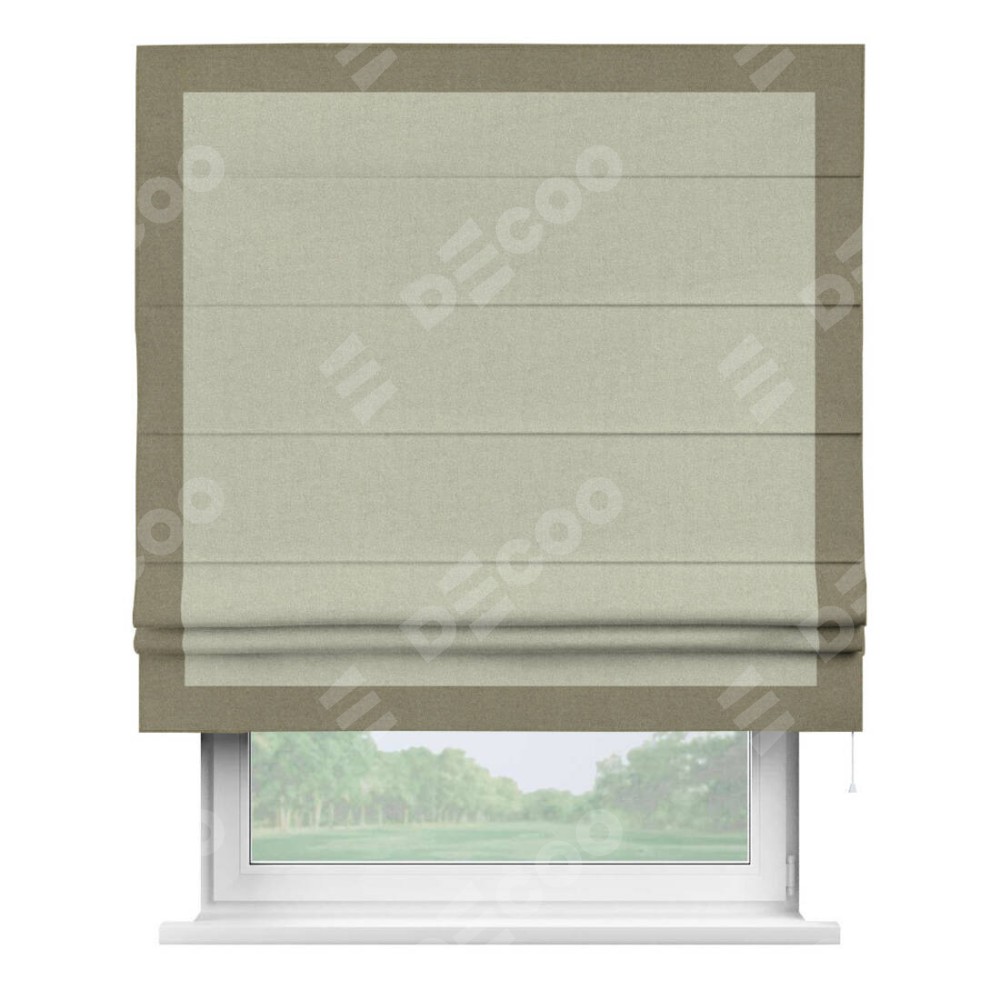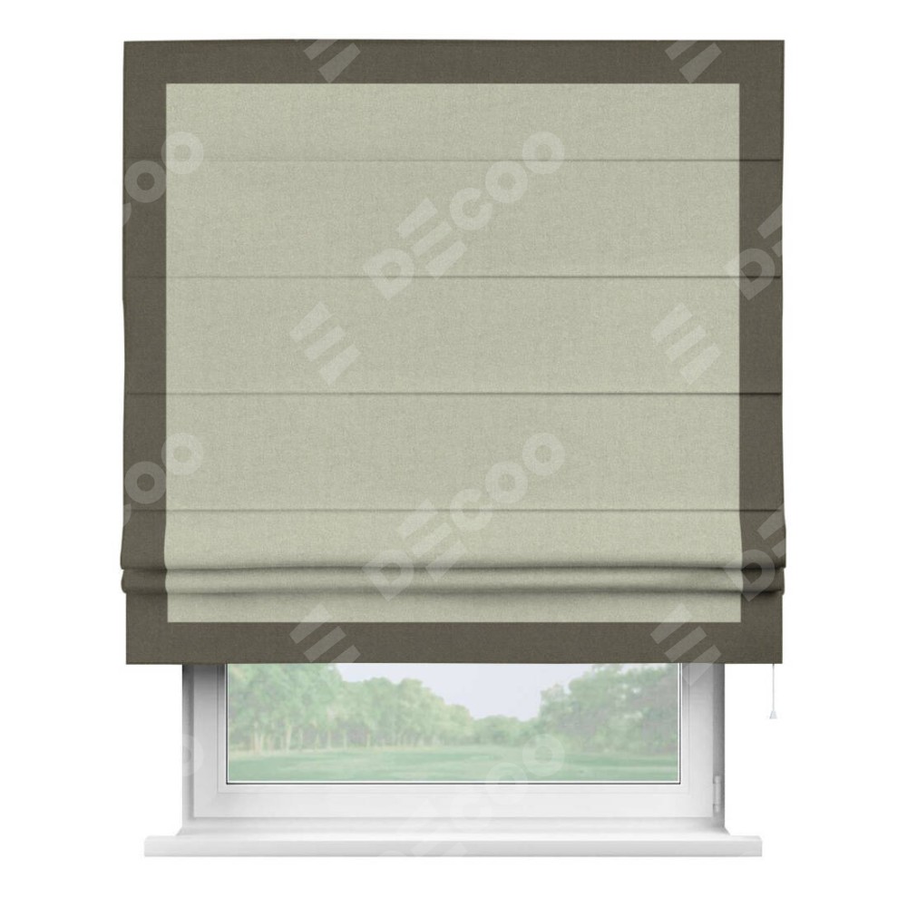 Римская штора «Кортин» с кантом Чесс, для проема, лён блэкаут серо-бежевый