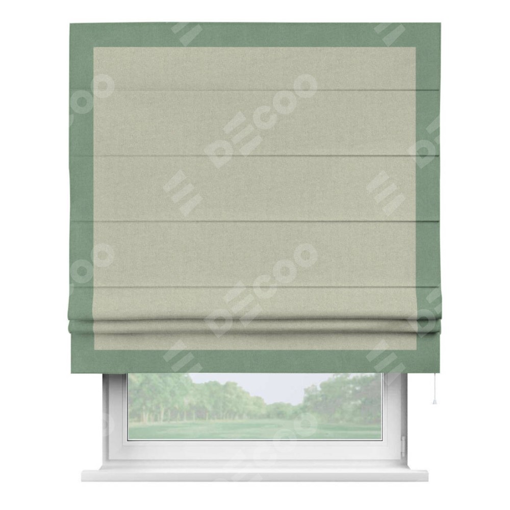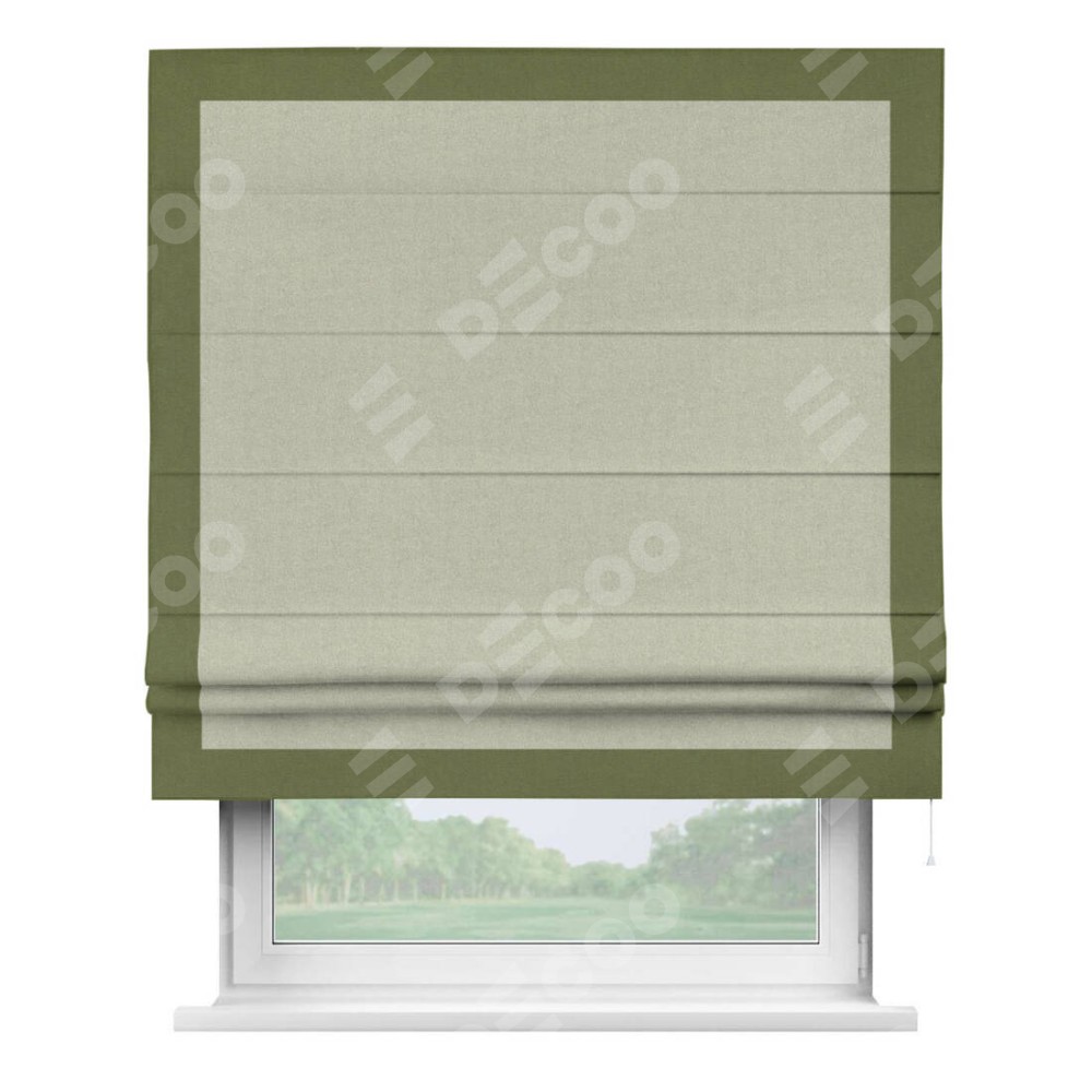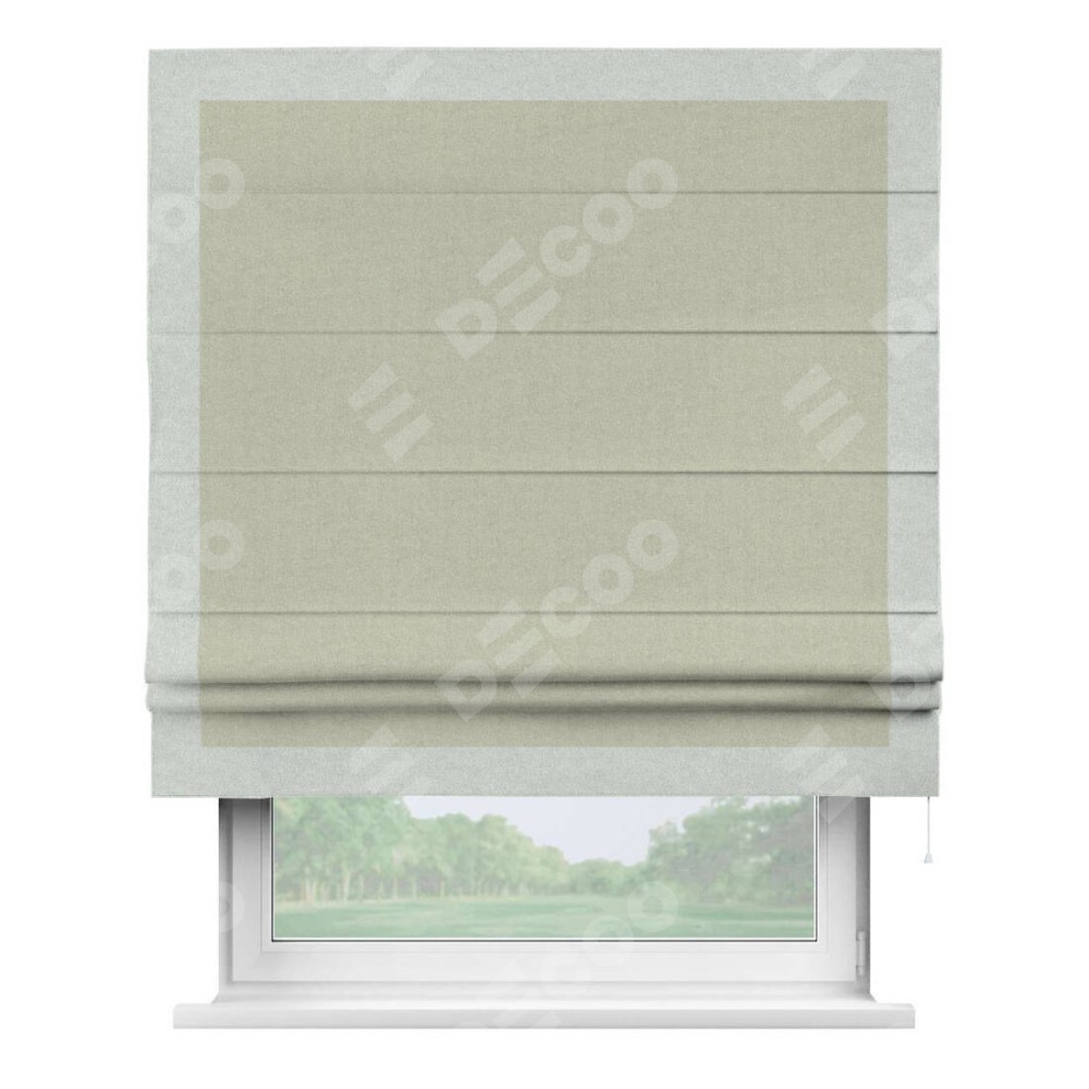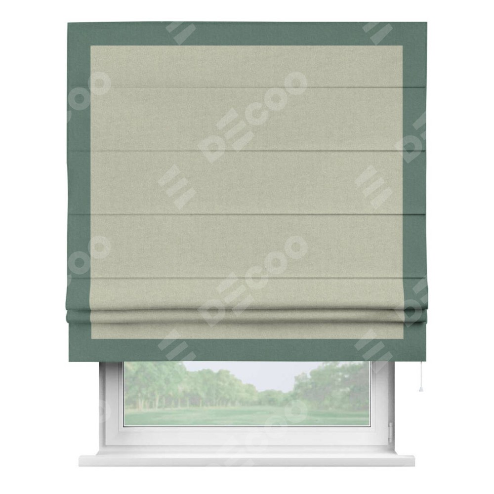 Римская штора «Кортин» с кантом Чесс, для проема, лён блэкаут серо-бежевый