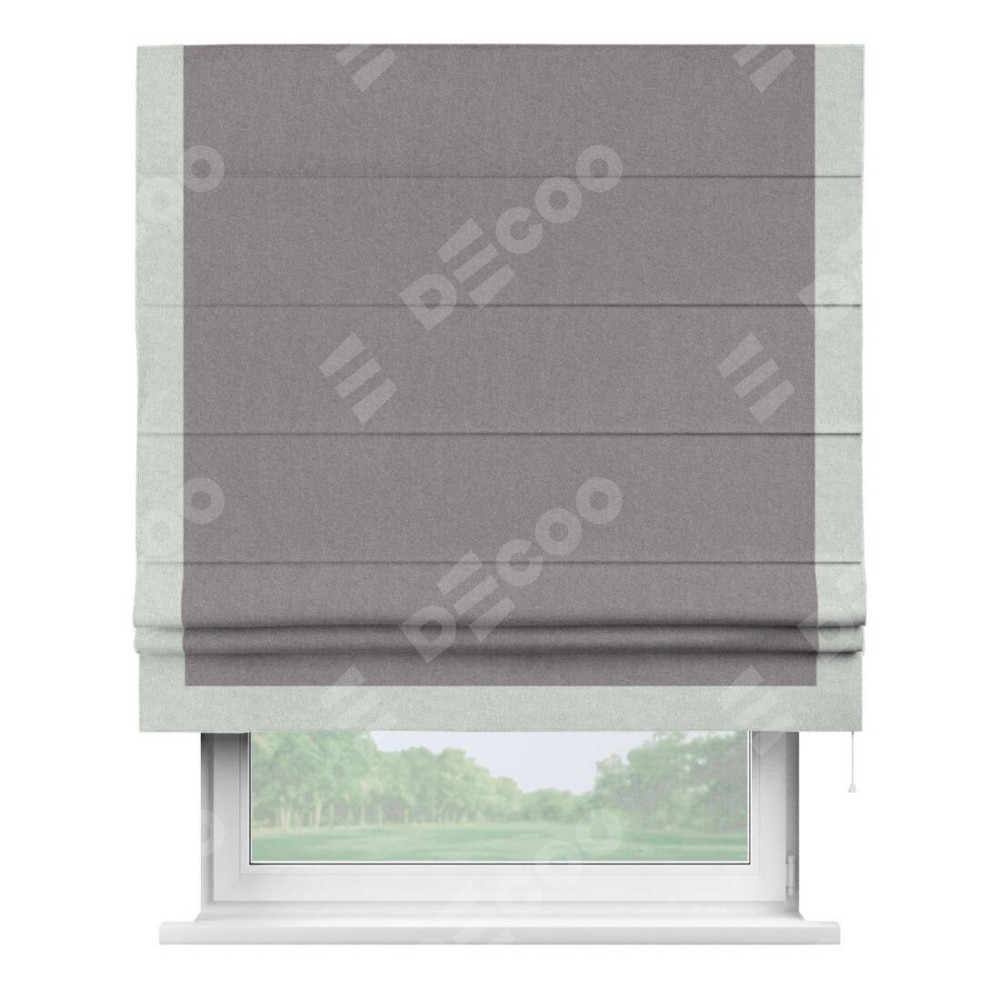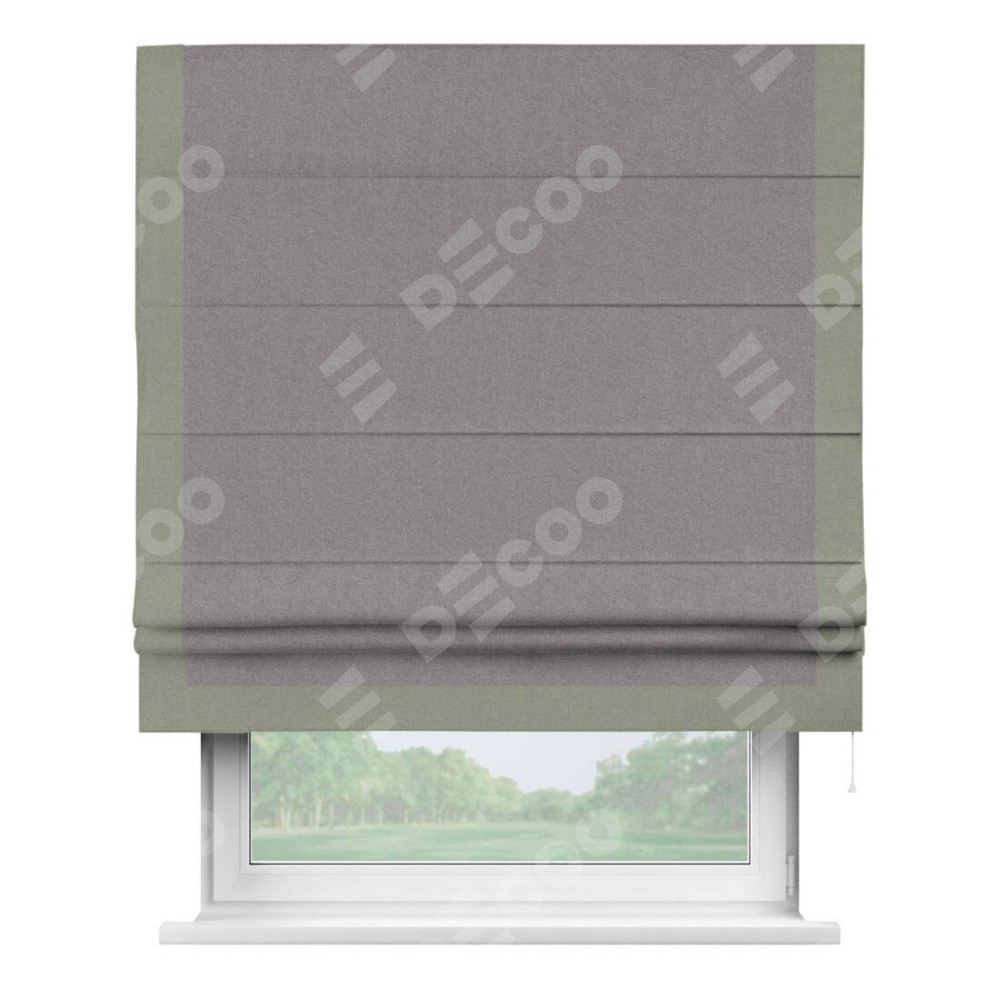 Римская штора производителя «Cortin», используется для проёма, пошита из ткани лён блэкаут сиреневый, артикул 69576. Отделка шторы кантом «Виктория», ткань для канта используется из льна разной расцветки на выбор. Имеет универсальный механизм и подходит для монтажа: на потолок, на стену и в нишу.
