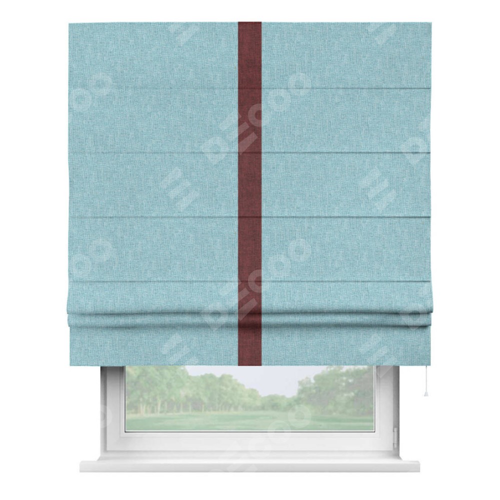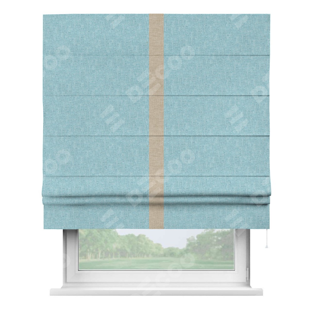 Римская штора «Кортин» с кантом Хайвэй, для проема, ткань лён кашемир голубой